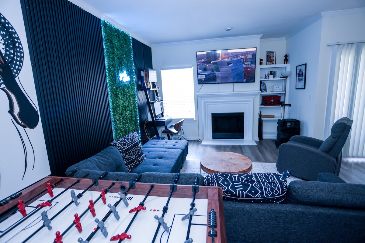 Wifi • Dedicated workspace • Exercise equipment • Washer • Outdoor dining area • Fire pit • Pool table • Indoor fireplace • TV • Air conditioning