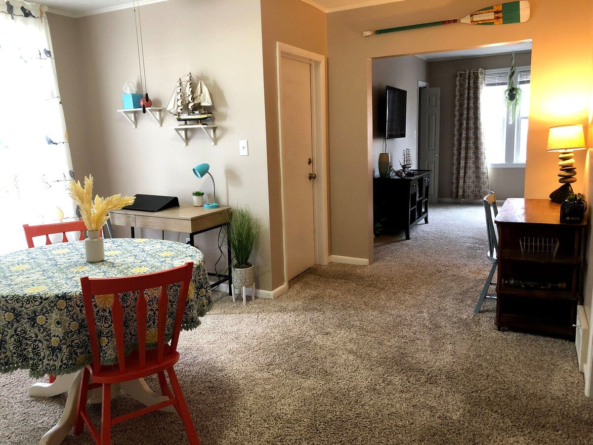Apartment 2 of 2, above our family business Shake It. We offer delicious healthy shakes and smoothies, sandwiches , wraps, and more . Beautifully renovated. Bright and clean ! Peaceful and relaxing after a long day of exploring. Close to many tourist attractions. Large kitchen, comfy king size bed and couch, smart TV, large rain shower head and mini split A/C! A large Walk in closet to get ready in. We hope you enjoy your stay !
