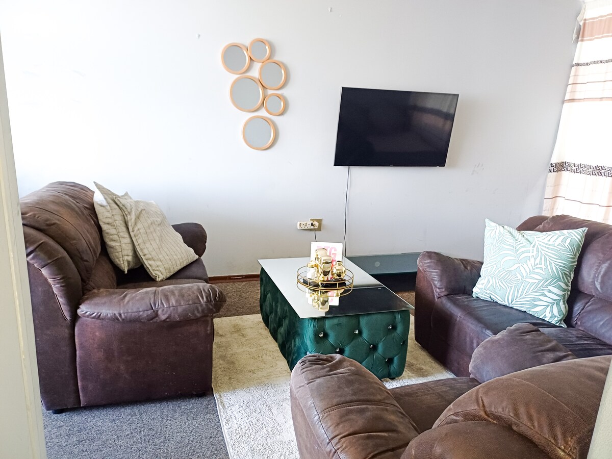 This welcoming, modern apartment comes equipped with everything you need for a self-catering stay, including a gorgeous, spacious kitchen with all necessary amenities, a dining table that seats up to six people, and a stylish, open-concept living room with comfortable furniture and a TV where you can unwind after a long day of city sight-seeing. The lounge leads out onto a delightful patio area where a braai and time spent with loved ones can be enjoyed. This beautifully decorated apartment features two lovely bedrooms with built-in cupboards for additional storage. After a busy day, you may relax in the plush beds that each bedroom offers. The apartment has two and a half bathrooms, all of which have a fresh and contemporary appearance.