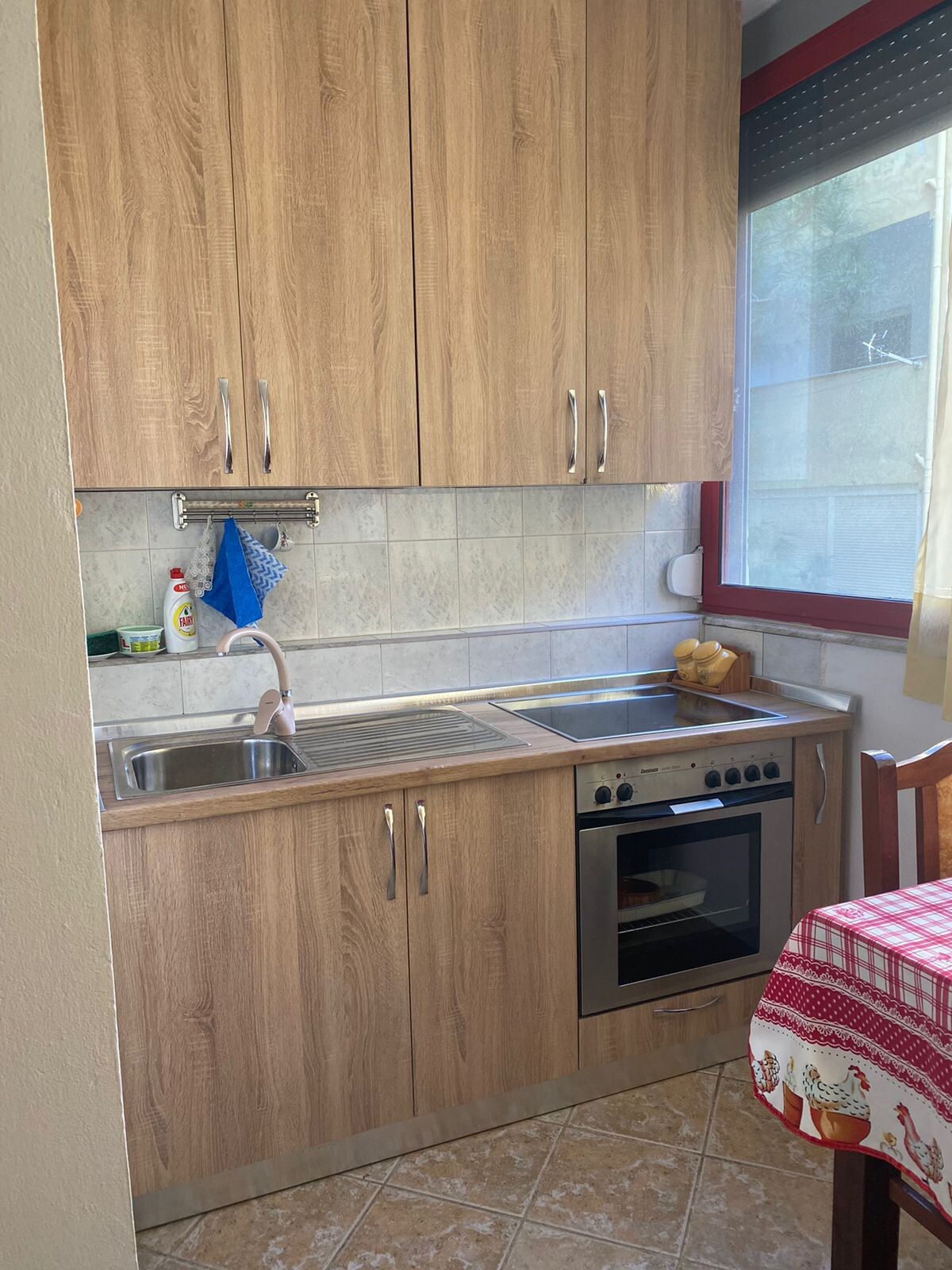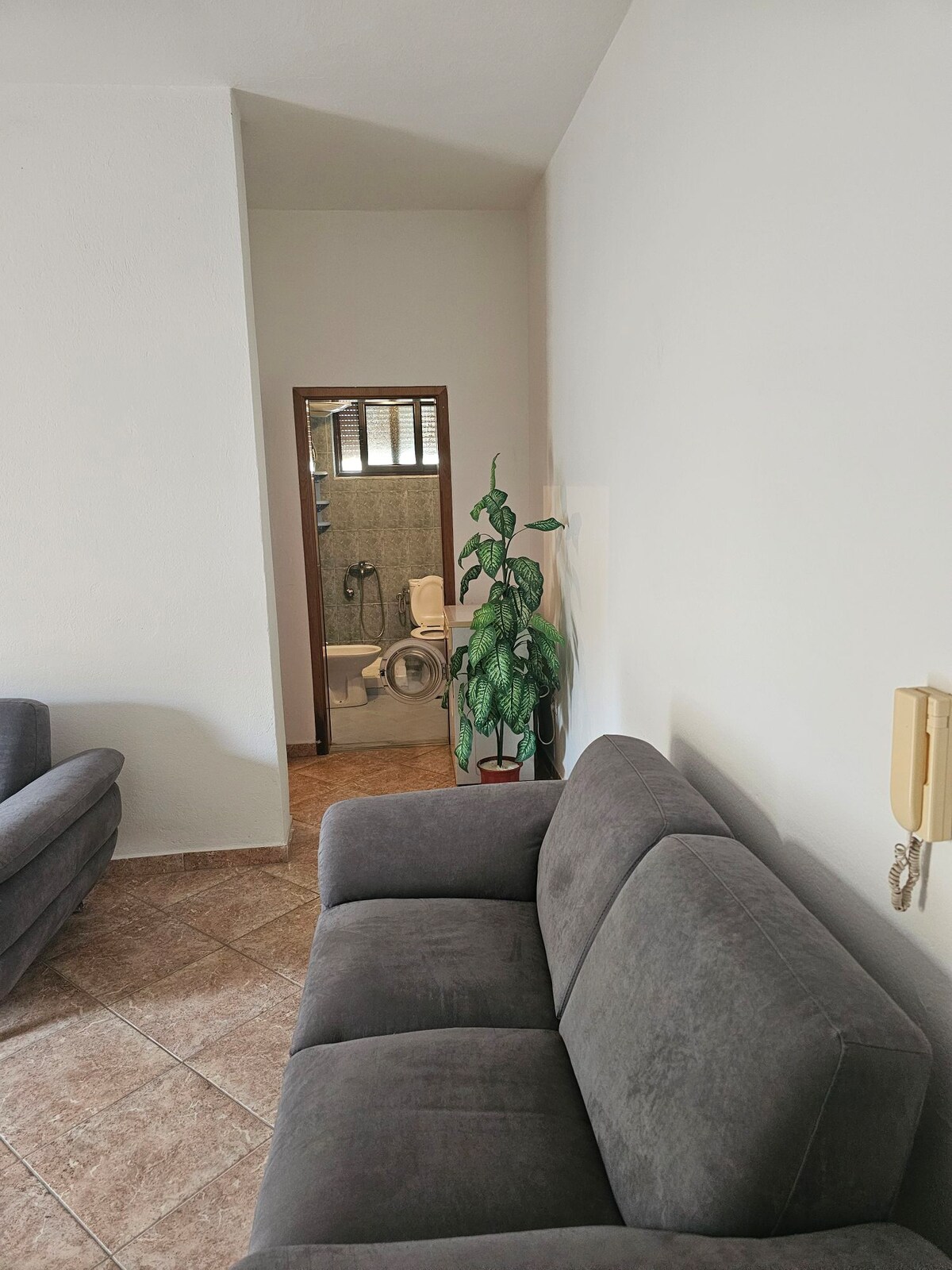 The apartment is furnished with all the essential amenities, double bed, a single bed, a sofa, has its own private bathroom and shower, a small kitchen, with a stove, fridge, and service (plates, forks, knives, spoons, glasses).