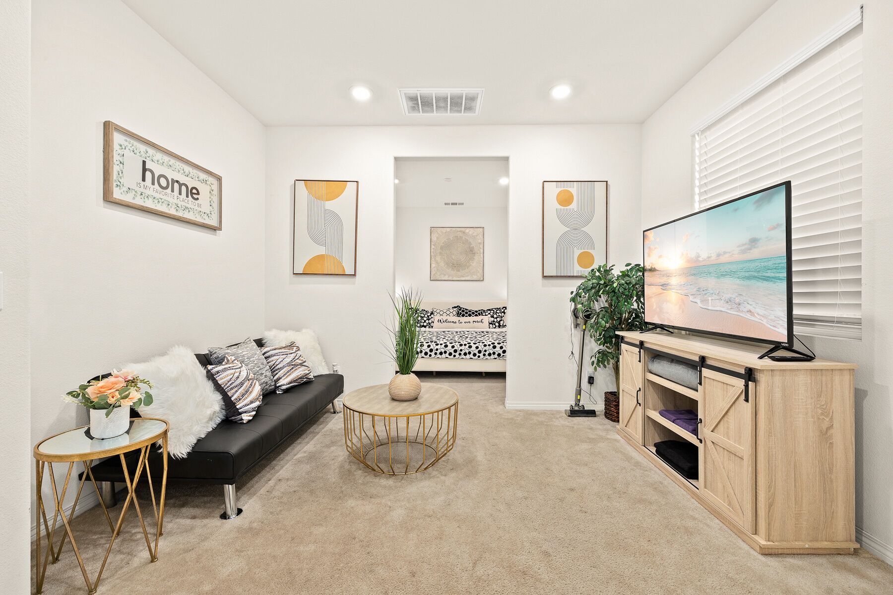 - "I had an amazing stay! The host was incredibly welcoming, responsive, and attentive to every detail. The property was spotless, cozy, and exactly as described—if not better! The thoughtful touches, like the generous supply of food and snacks, made me feel right at home and were much appreciated after a long day of travel. The location was fantastic—close to Sprouts, Starbucks, a gas station, and a shopping center, which made everything super convenient. I would definitely stay here again and highly recommend it to anyone visiting the area. Thank you for such a wonderful experience!"