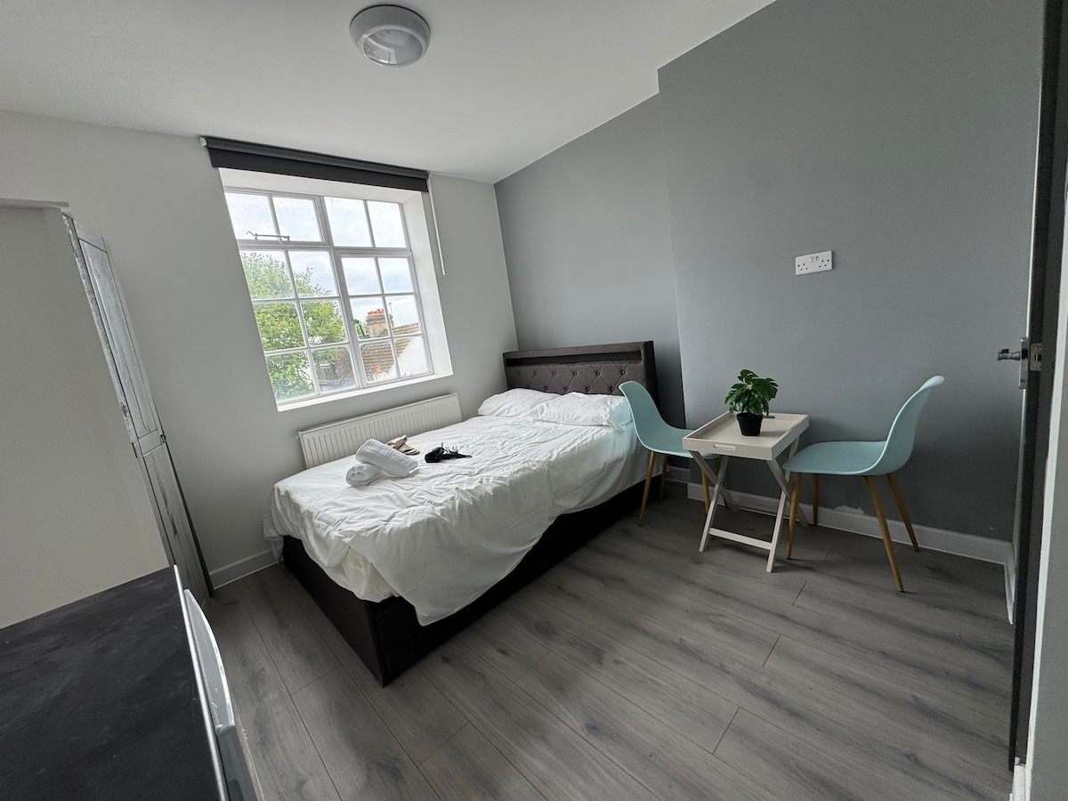 A spacious double room in an apartment in front of Edgware Tube Station and Bus Garage.