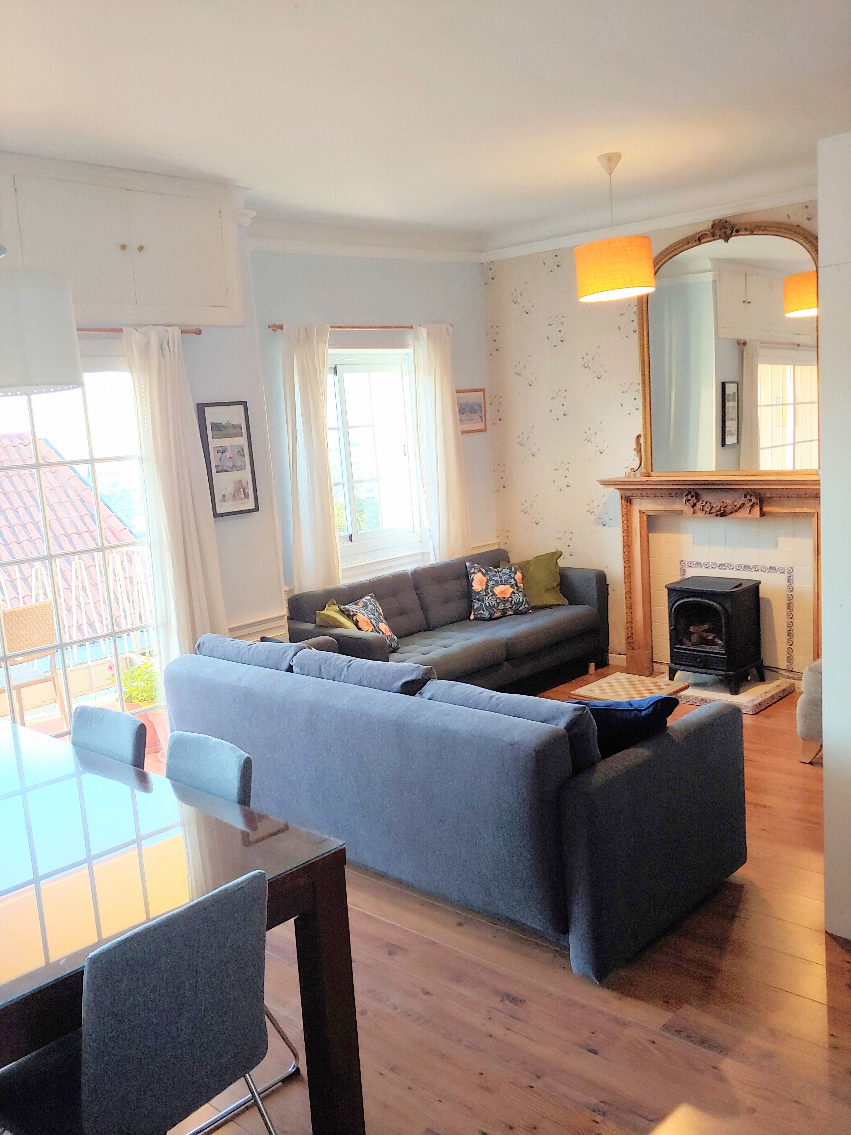 The apartment accommodates 4 guests, with 2 bedrooms, each with a double bed, and a double sofa bed in the living room. The apartment also has a separate dining room for 4 diners.