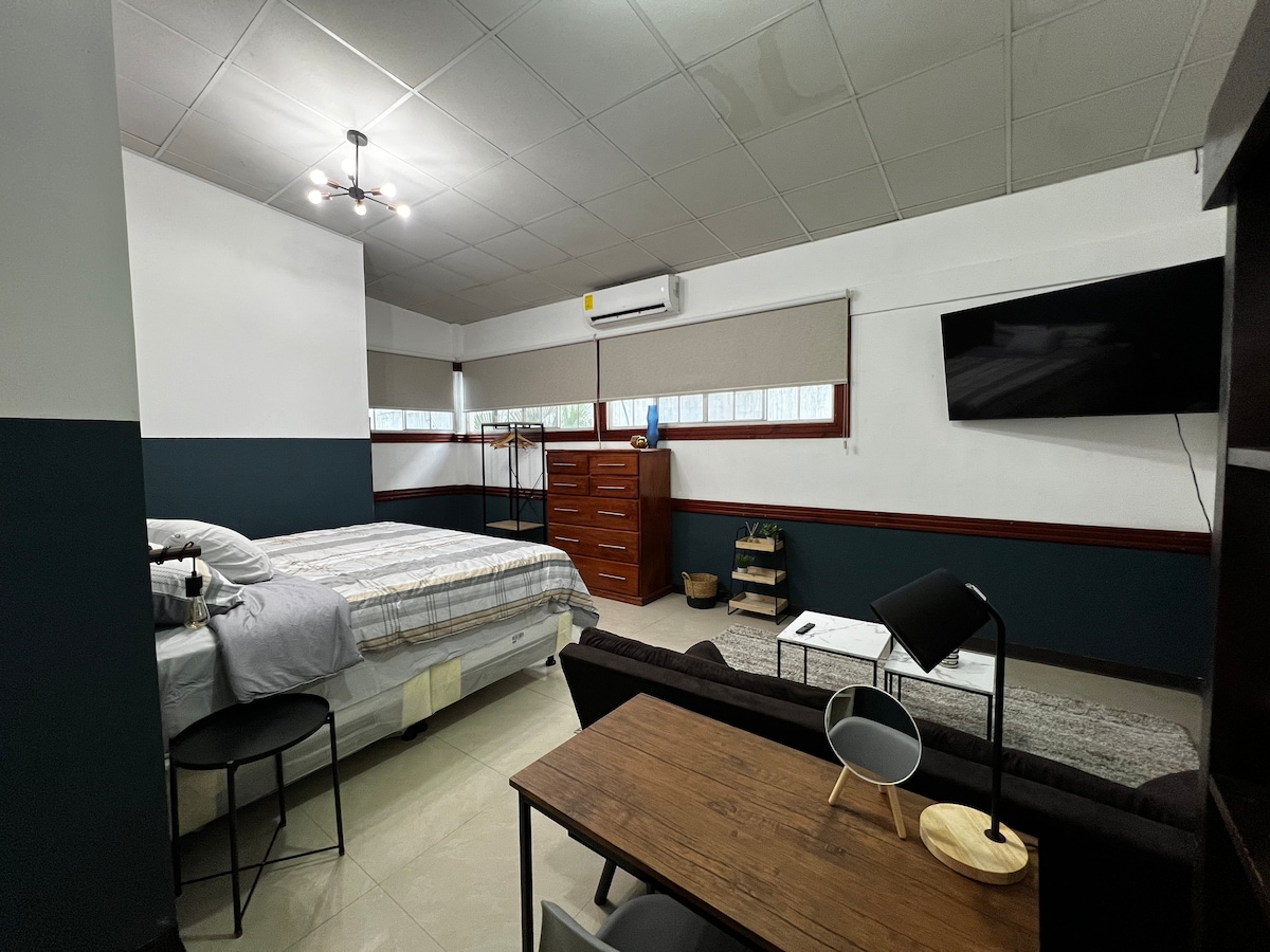 Enjoy a small and cozy apartment in Residencial Bethania, fully equipped, a safe and quiet area. It has a full kitchen, work area, comfortable bedroom with TV and private bathroom. In one of the safest neighborhoods in Santa Tecla, close to shops such as Las Ramblas, coffee shops, restaurants and areas for exercising or walking. Easy access, comfort and ideal price.