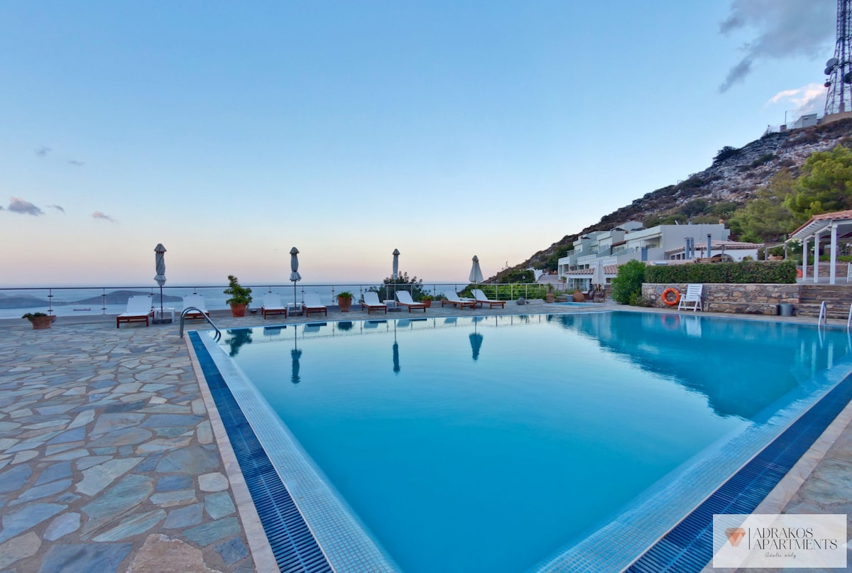 Adrakos Apartments are well maintained apartments, perched high on the mountainside on the way down from Agios Nikolaos to Elounda. The family-run apartments and studios have a spectacular panoramic view of the Bay of Elounda and the intriguing island of Spinalonga. They also include a TV, air conditioning and a kitchenette with a mini oven and fridge. The on-site restaurant features magnificent sea views and serves Greek and Mediterranean cuisine. Free WiFi is available throughout the property. Adrakos Apartments features a lovely swimming pool which can be used as a place to relax and watch the magnificent gulf of Elounda.