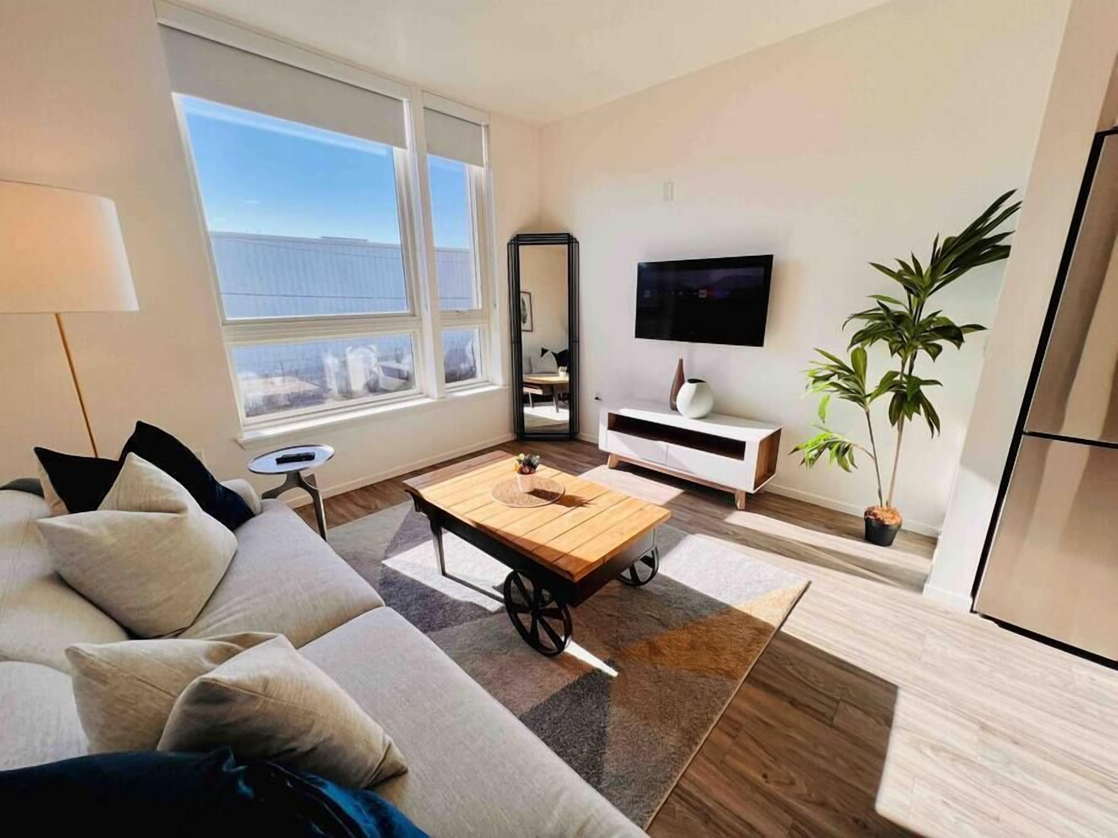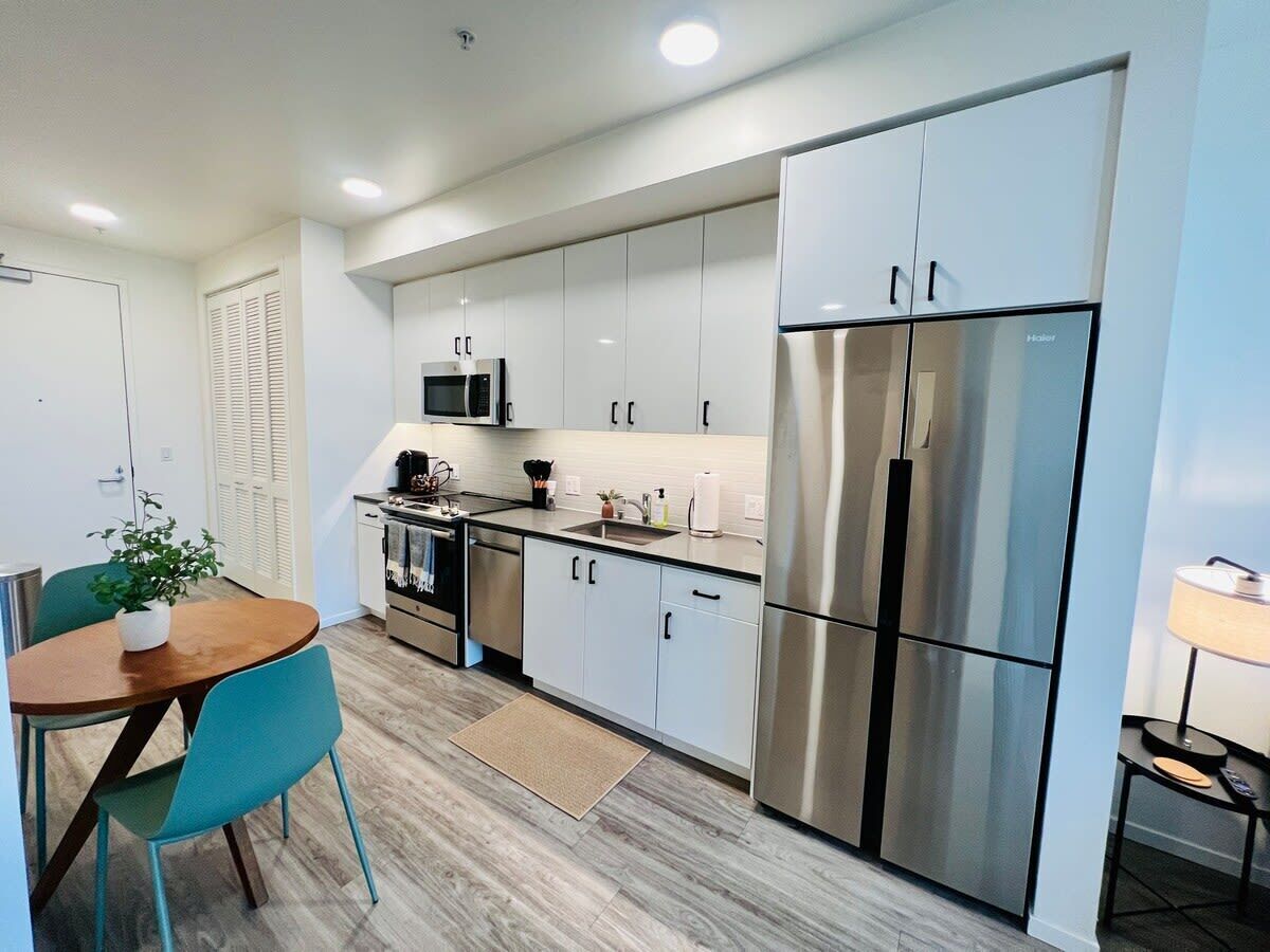 We are happy to welcome you to your home away from home in the Heart of the Bay. This unit boasts two 20’x20’ bedrooms each with plush queen sized beds. A full sized kitchen equipped with stovetop, full size refrigerator, dishwasher and starter essentials. A living space furnished with multiple couches, a smart tv that you are welcome to stream from the preloaded accounts and high speed Internet.