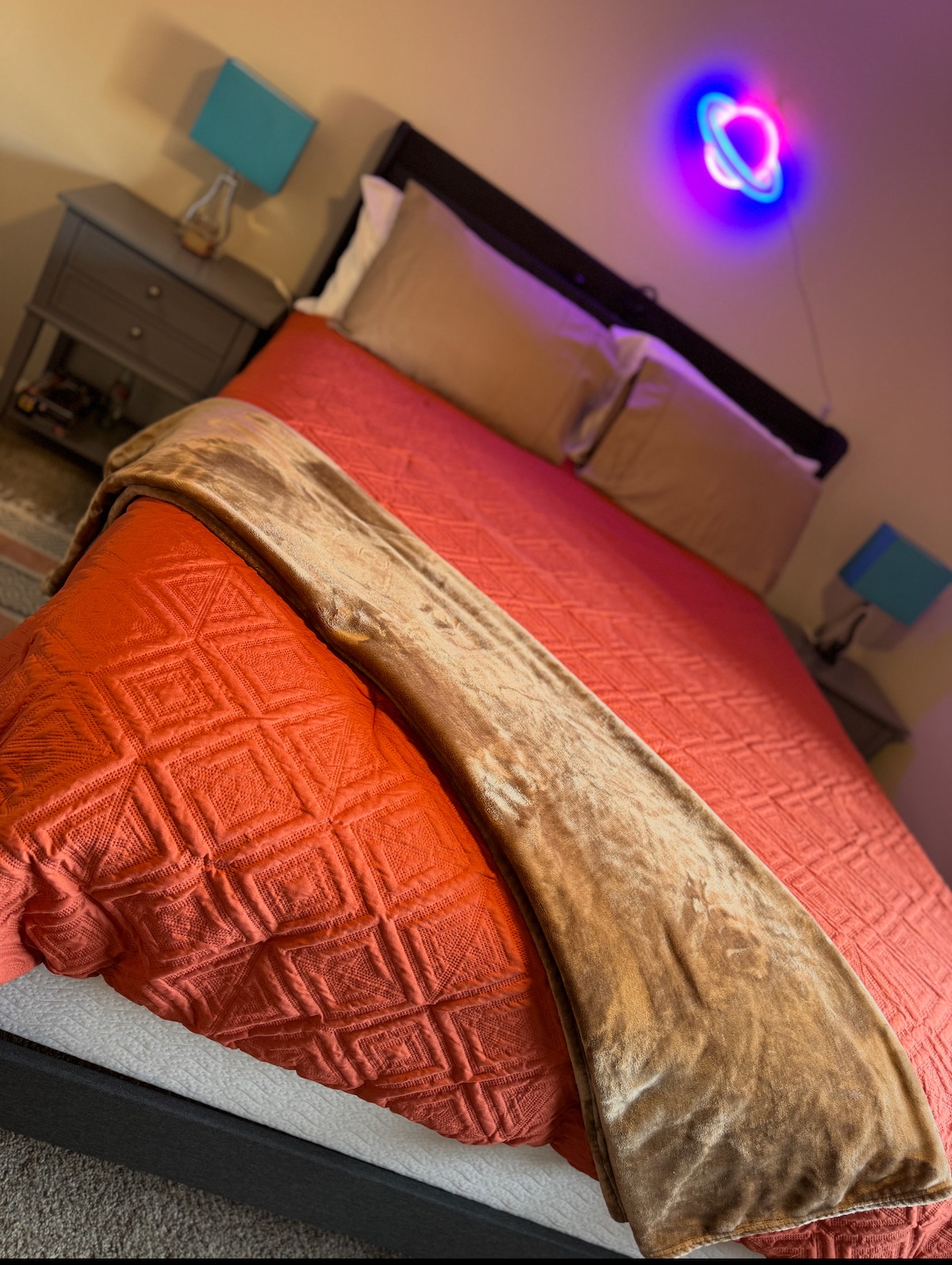Eco memory foam mattress. Luxurious 5000 thread count linens. Contemporary heating and air conditioning system.