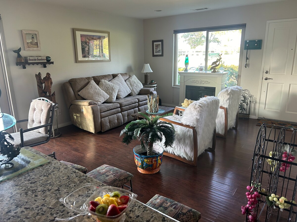 Cozy Living Room with fireplace and slider to balcony for ocean breezes