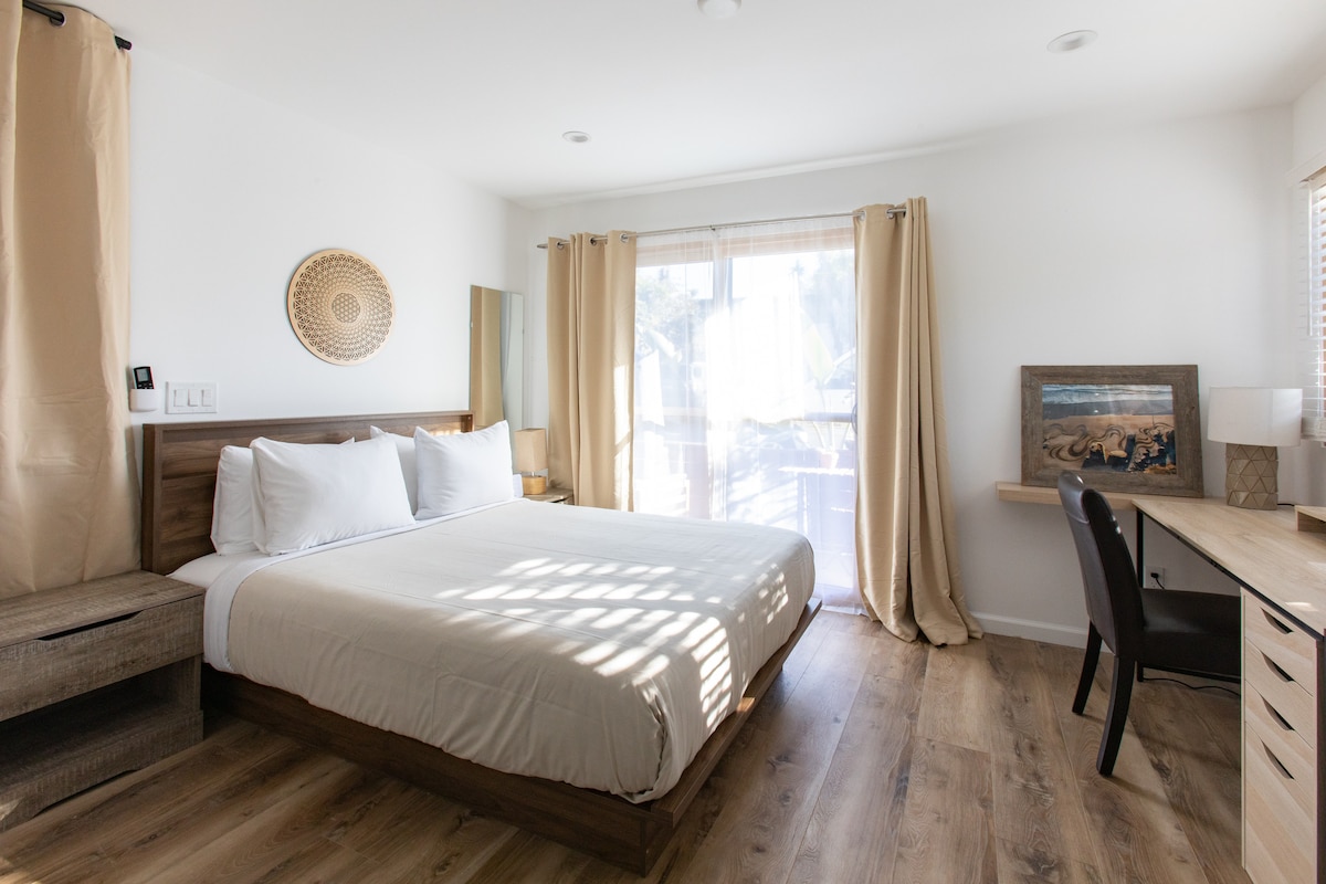 Outsite San Diego - Encinitas Grandview offers both a charming beach house and a cozy one-bedroom apartment, each just steps from Grandview Beach. The one-bedroom apartment, with its private entrance, is fully furnished and designed to provide the perfect balance of comfort and convenience.