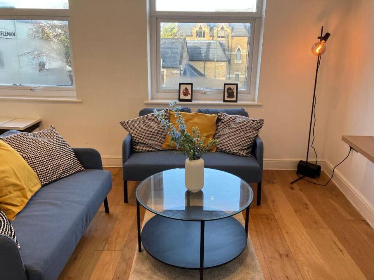 The living room is on the second floor with neutral decor and comfortable sofa bed. The bedrooms can be set up with a King Bed or 2 singles in each bedroom and are dressed with hotel quality bedding. Well equipped kitchen is a great space to create scrumptious food. Excellent 100Mbps Virgin Media Wifi and 32" Flat Screen TV. Three tiered computer desk and chair ideal for business travellers.