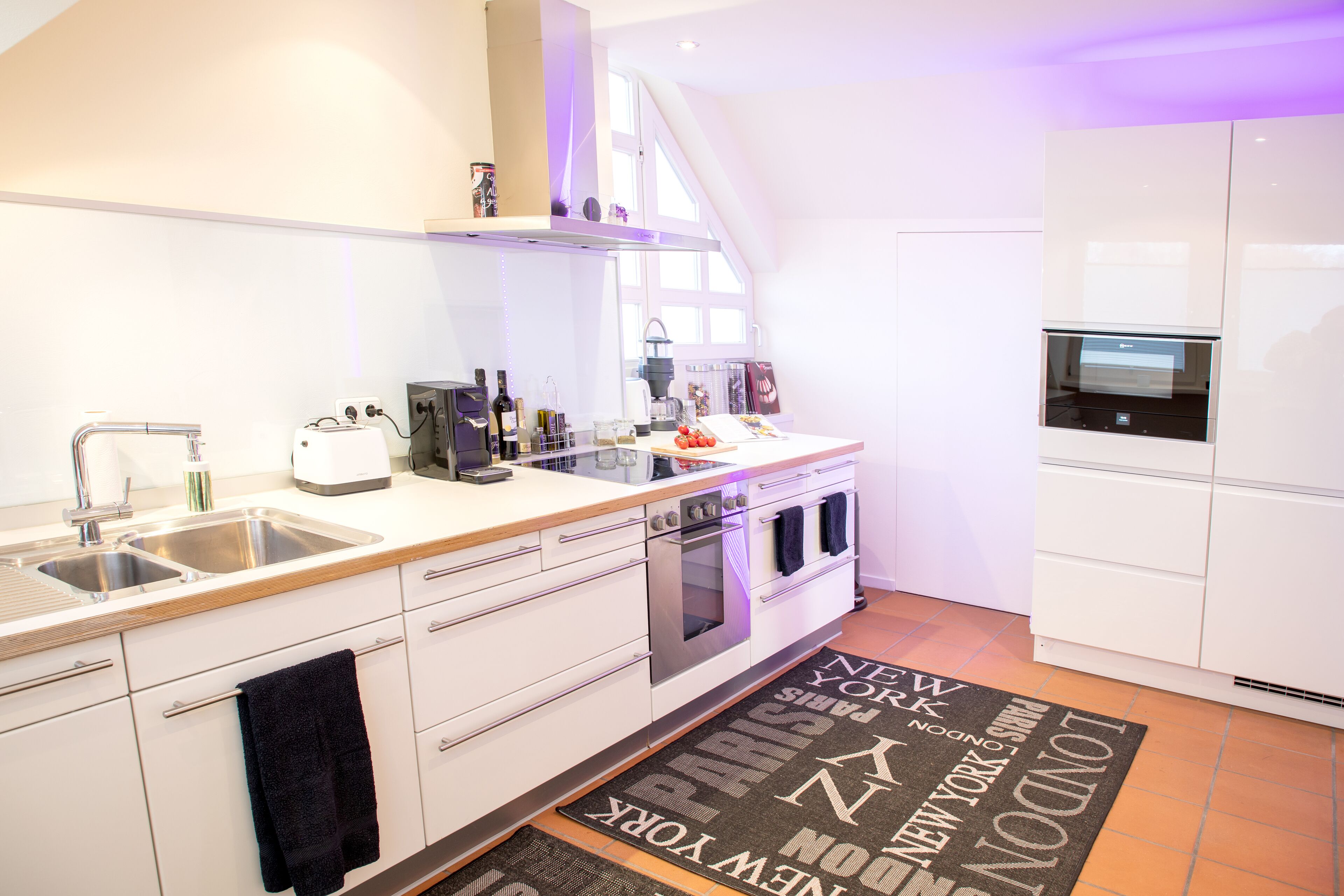 In the large fitted kitchen is located: