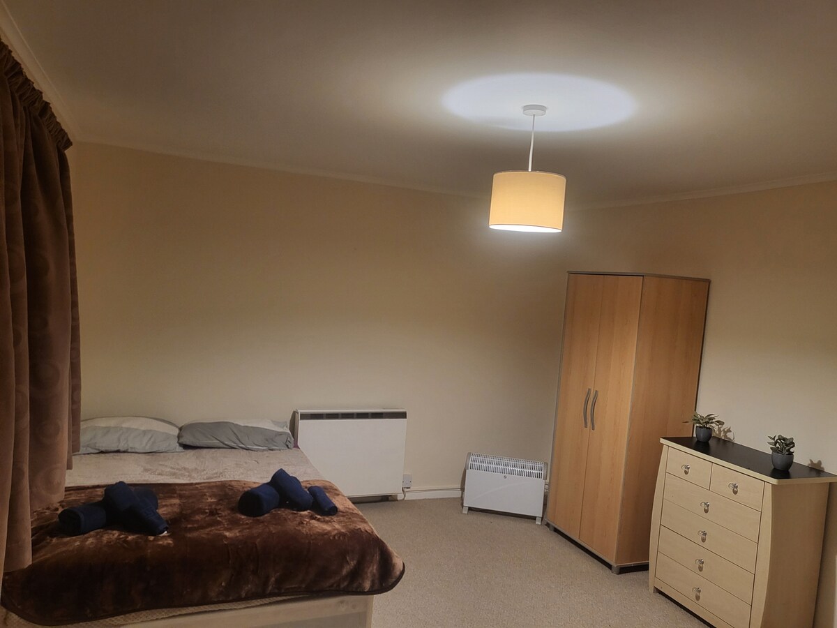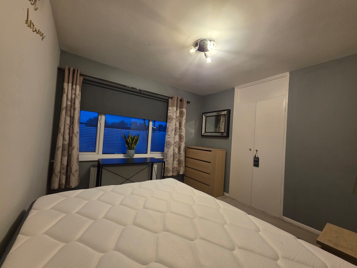 Large double bedroom, 10 minutes walking from the town center and train station that takes you to stansted airport in 5 mins and less then 30 minutes to the center of the city of London