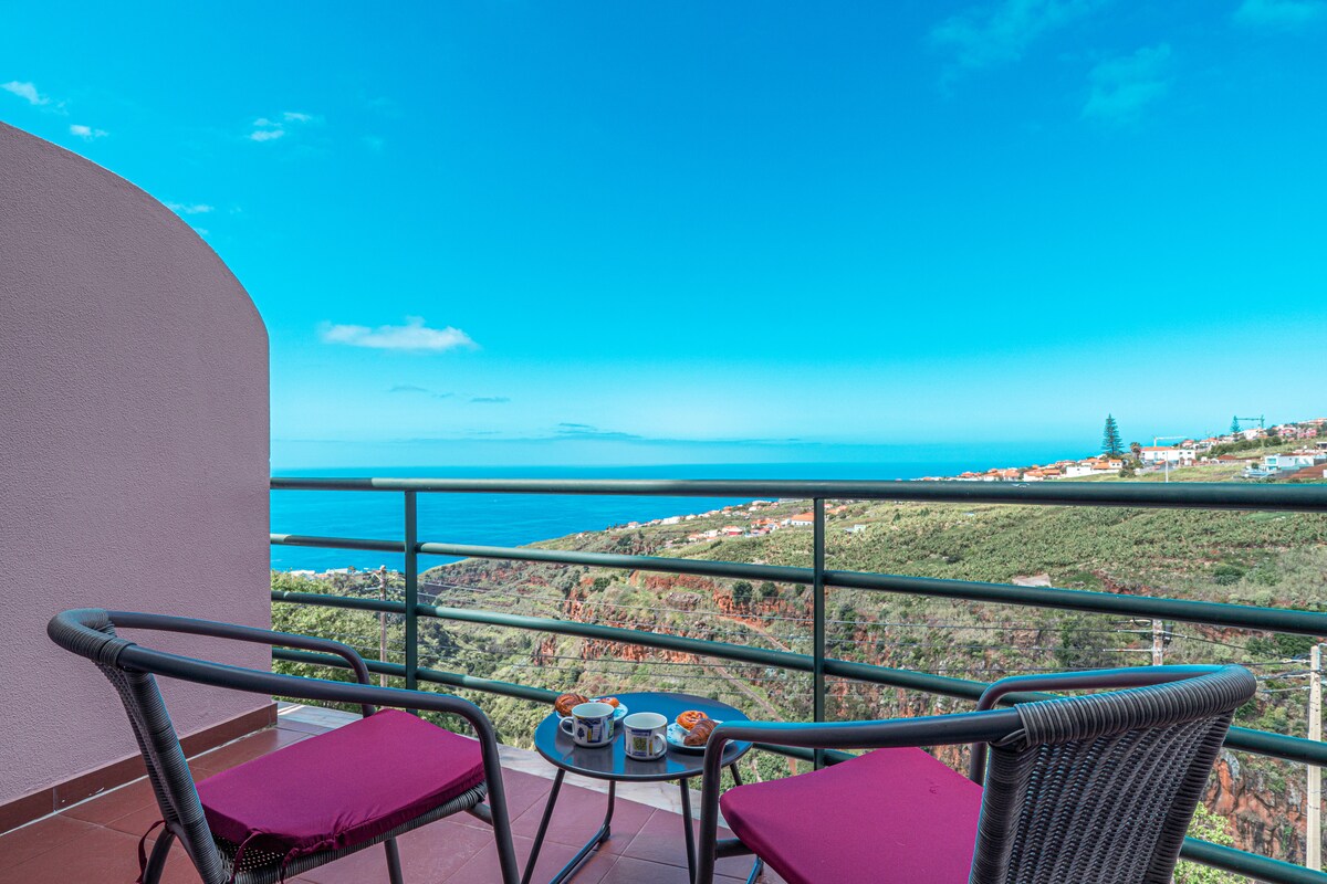 Welcome to Casa Branca B, a modern hillside apartment in Estreito da Calheta, offering breathtaking views of the Ocean and surrounding hills ,the perfect base for your Madeira escape.