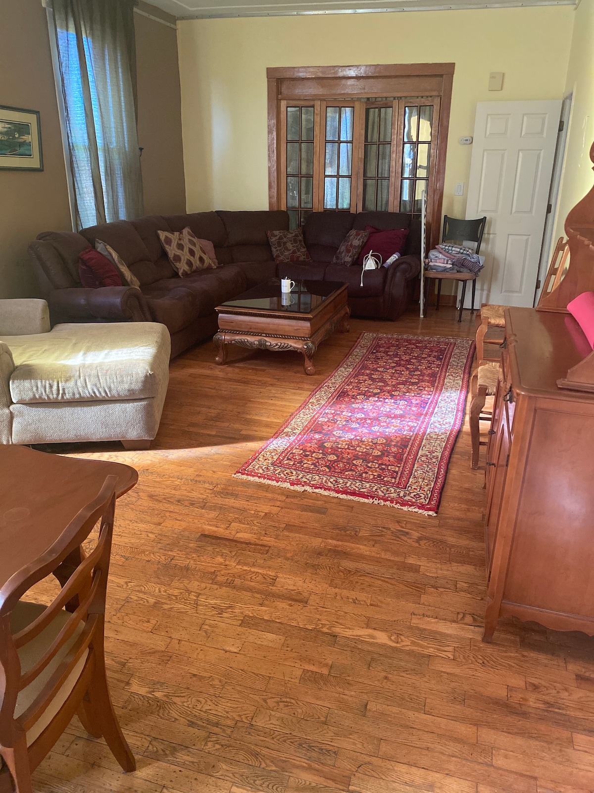 We live in the lower floor with a separate entrance to the back of the house where we have a family room, kitchen, bathroom and two bedrooms. Guests staying more than a week can give us laundry to wash or use our washer/dryer in the basement when we are not home.