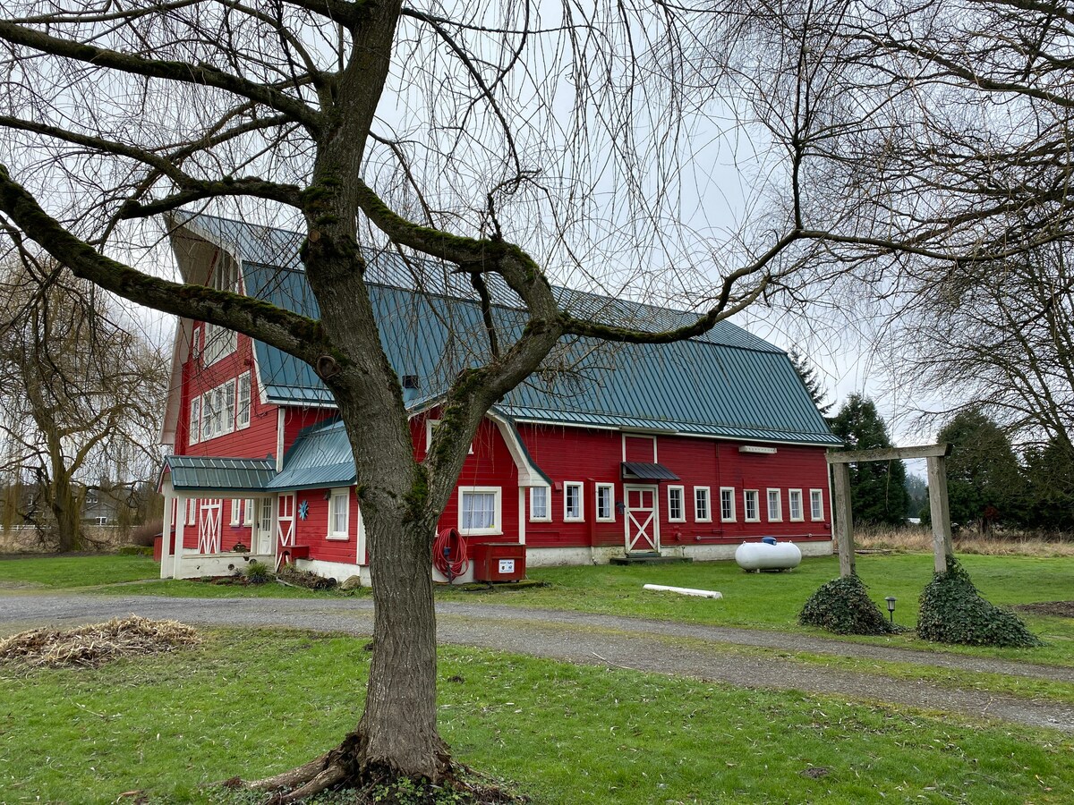 Enjoy one of our private apartments in a refurbished barn. No, not this whole barn, one apartment perfect for a couple. Full kitchen amenities, spacious private shower room /sauna and half bath..Situated on 5 acres surrounded by farm land. Private entrance and lock code. No contact check in if preferred.