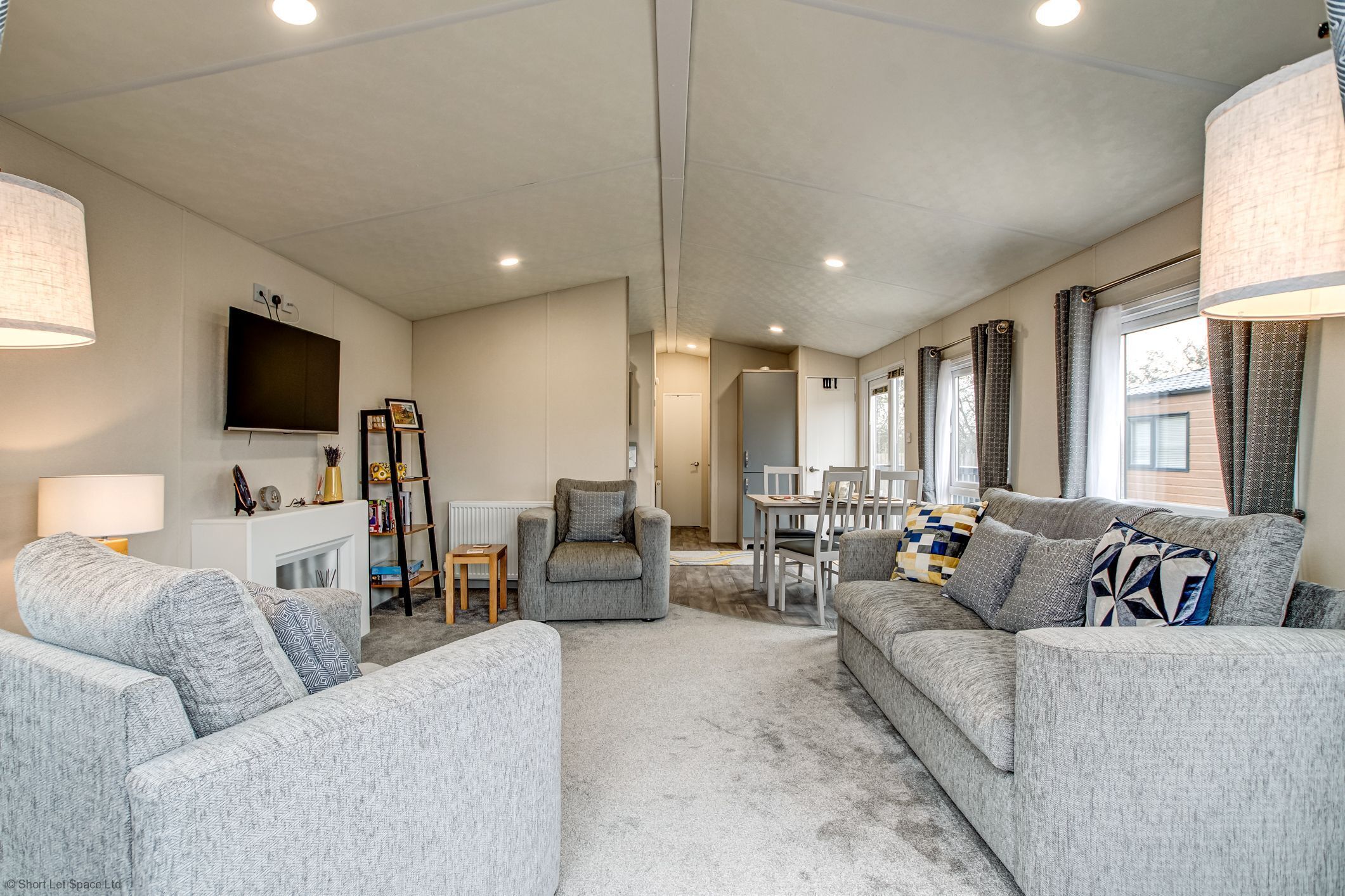 •Living area with two large sofas, digital TV with Freeview tuner and Bluray/DVD player