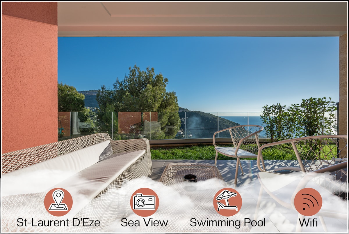 The top floor apartment offers sea views and views of the village of Eze, worthy of a postcard.