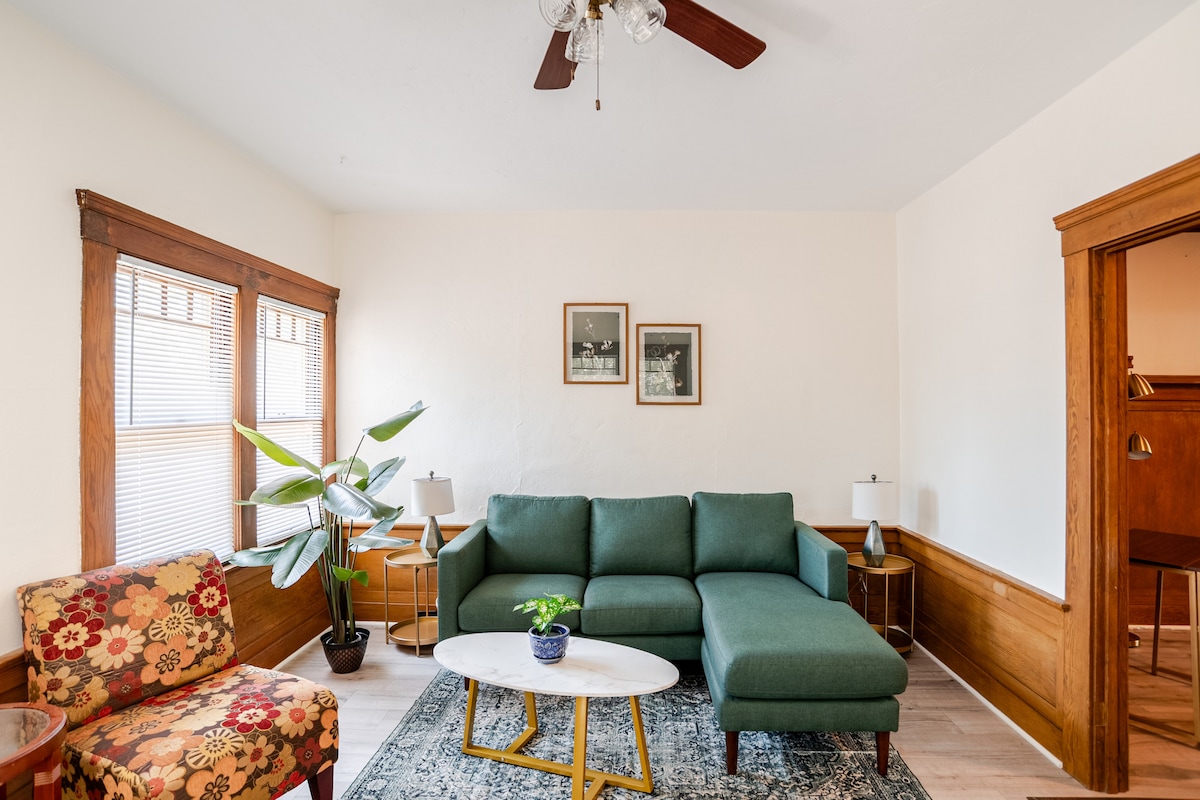 Our Victorian Green Queen was built in 1890. In 1920 the downstairs Arts and Crafts 1,000 square foot apartment was added. Enjoy complete privacy with self-check-in, your own entrance, two bedrooms, one bathroom, private laundry room, full kitchen and a lovely secluded courtyard. We have restored the entire flat, which features extensive woodwork, vintage light fixtures, and antique furniture, all providing you with a rich experience of staying in a historic setting deeply rooted in the past.