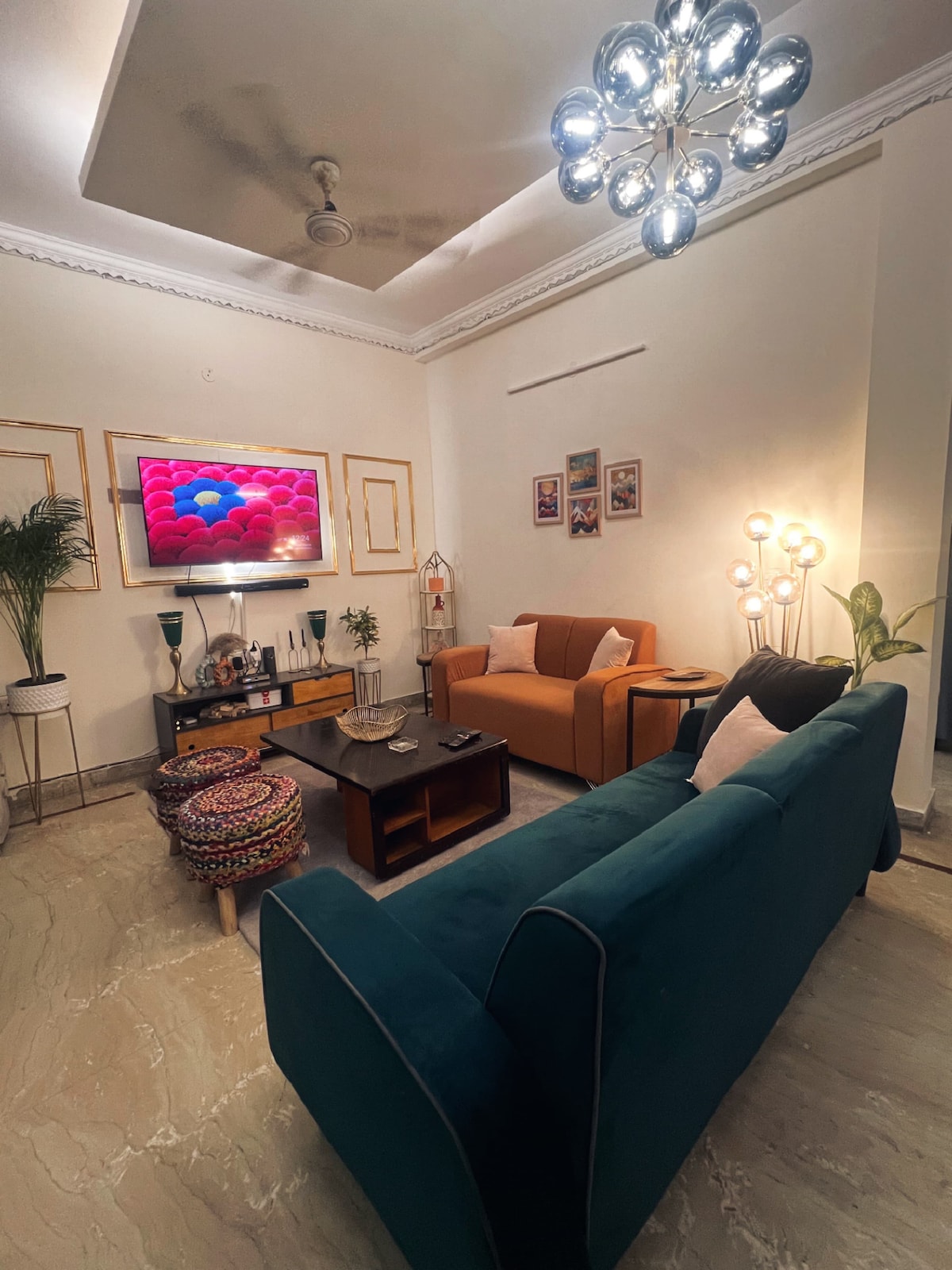 📺 Entertainment & Comfort – Enjoy a smart TV, high-speed WiFi, and a beautifully set-up living space with unique handmade poufs and elegant furniture.