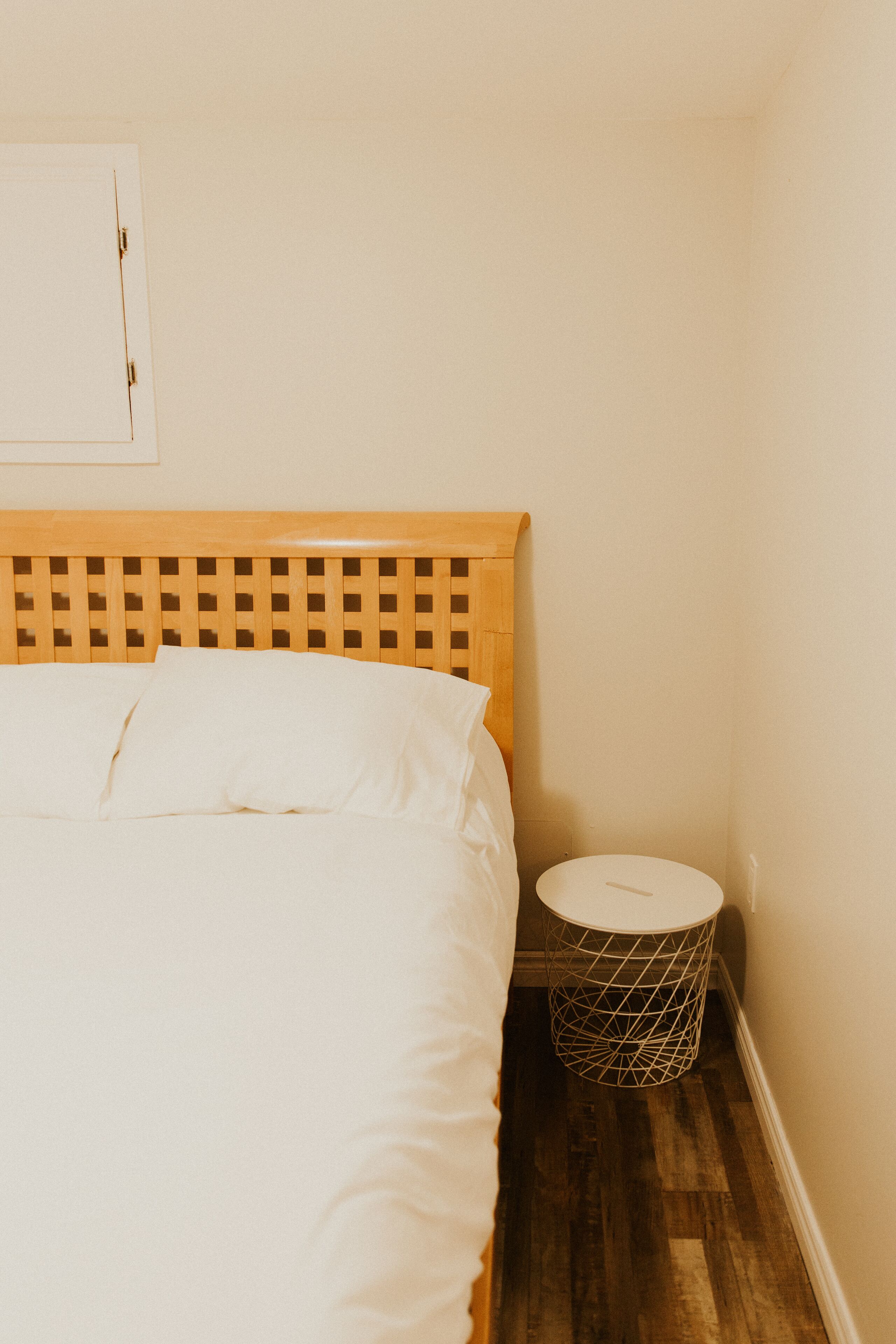 This unique space is a hidden gem that feels light and spacious. It is designed with everything you need to make your stay a pleasure! The double bed rolls away under the kitchenette to create a comfortable couch seating space. The kitchenette includes a sink and counter with a small fridge, hotplate, microwave, kettle, French press coffee maker, toaster, cookware, dishes, cutlery, and a BBQ outside.