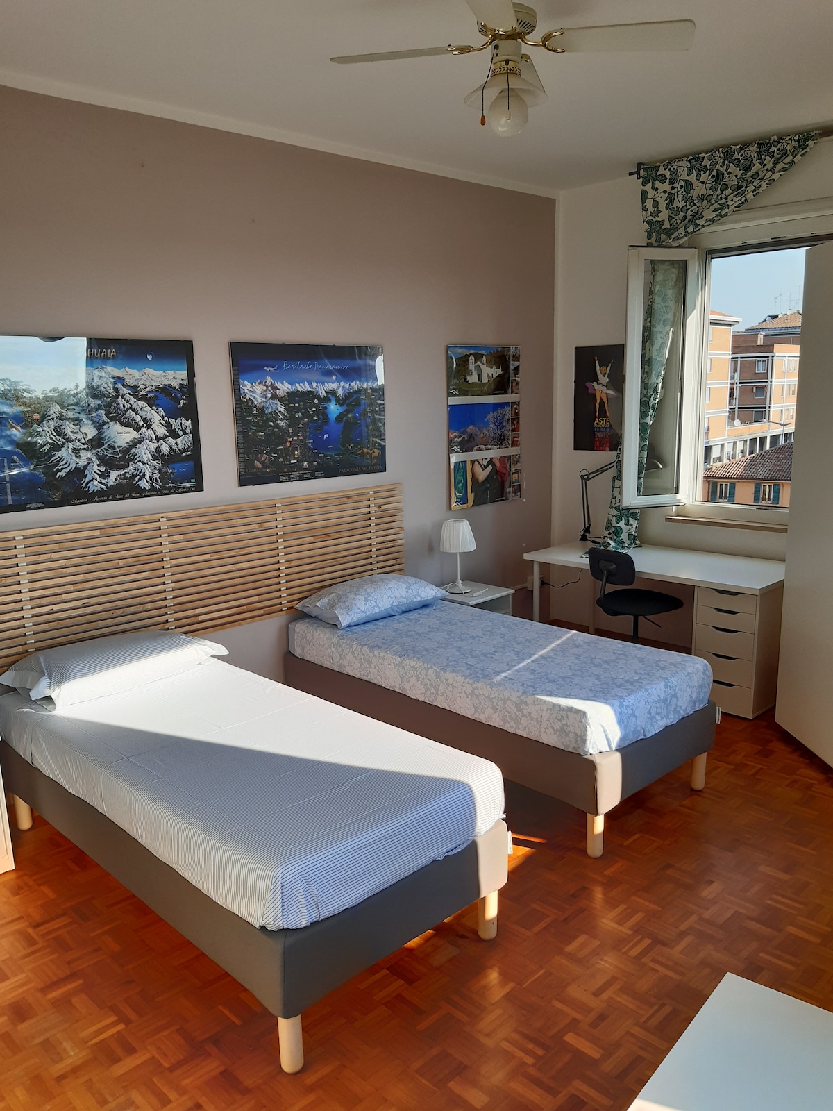 The bedroom has two single beds, one of which is a folding bed. It is a Ferrara safe located in the historic center - quiet, comfortable area, equipped with all amenities, very close to the castle (5'walk) - the train station (10' walk) and free parking (5' walk).