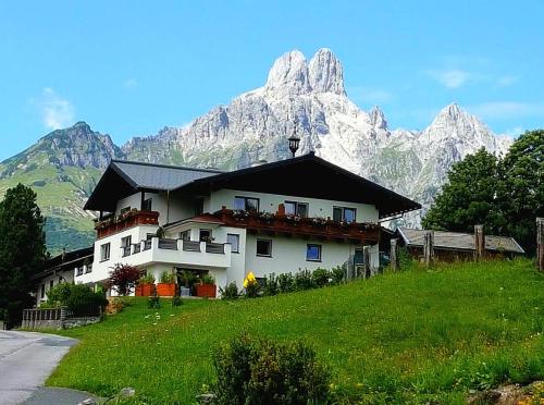 Our house is placed in a sunny location at 1056m in height and has a beautiful view to the Bischofsmütze and the Dachstein massif.