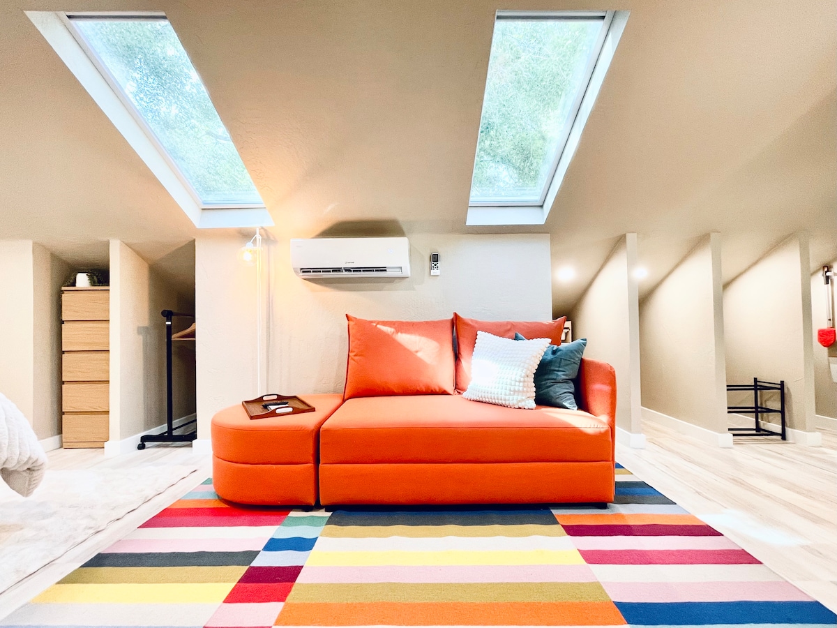 Upstairs studio suite attached to a family residence with a separate entrance and complete privacy. Walking distance from Historic Downtown, restaurants, coffee houses, art galleries and retail shops.