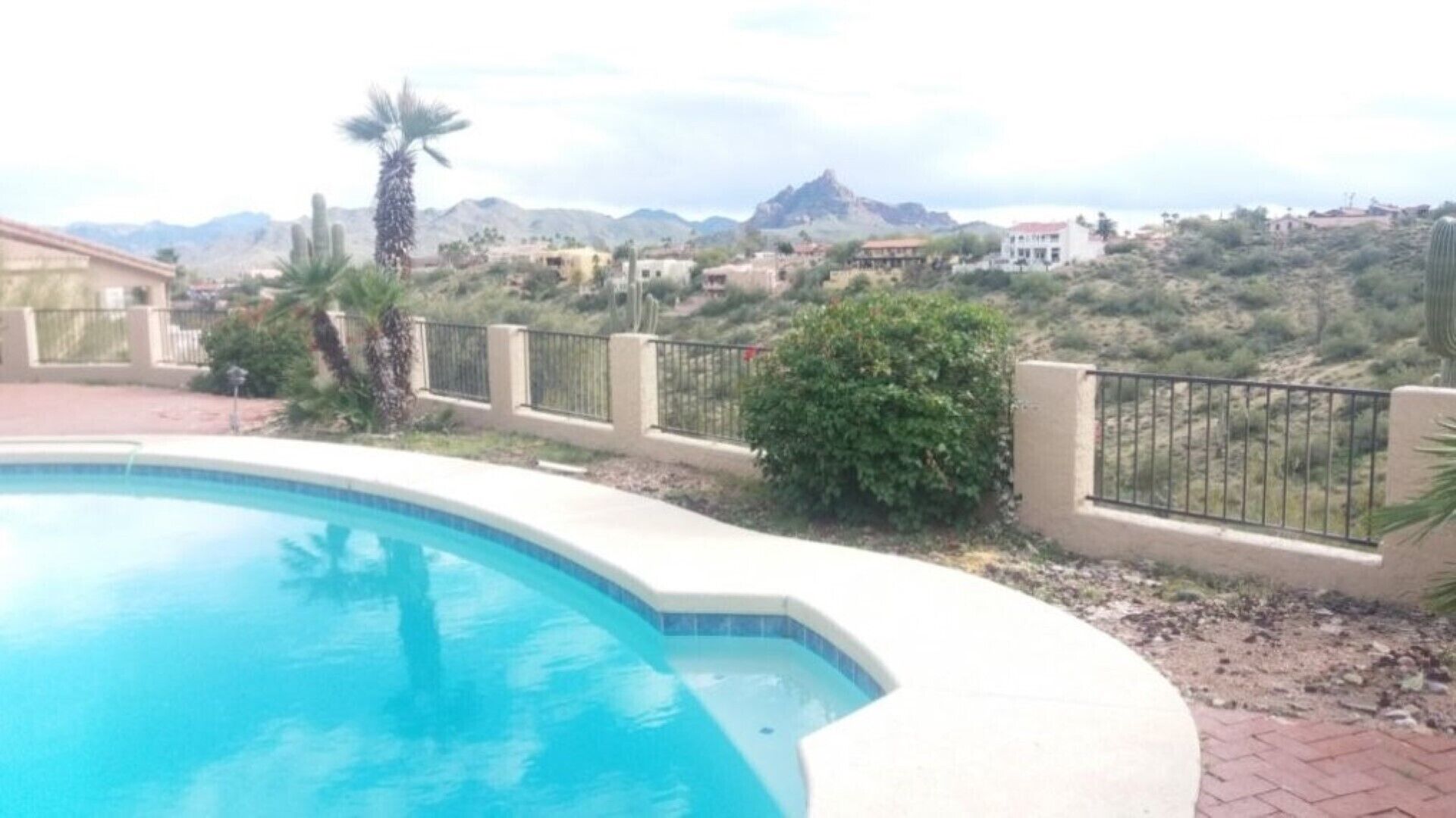 The views are spectacular from this one bedroom suite(partial home) with kitchenette equipped with refrigerator and microwave oven. Home sits on a 2 acre lot with views of red mountain in the back and four peaks in the front. Very comfortable for two but can sleep four with a pull out couch. Enter through the back private door. Small staircase to get in. No children due to pool safety. Close to Scottsdale, Tempe and East valley.