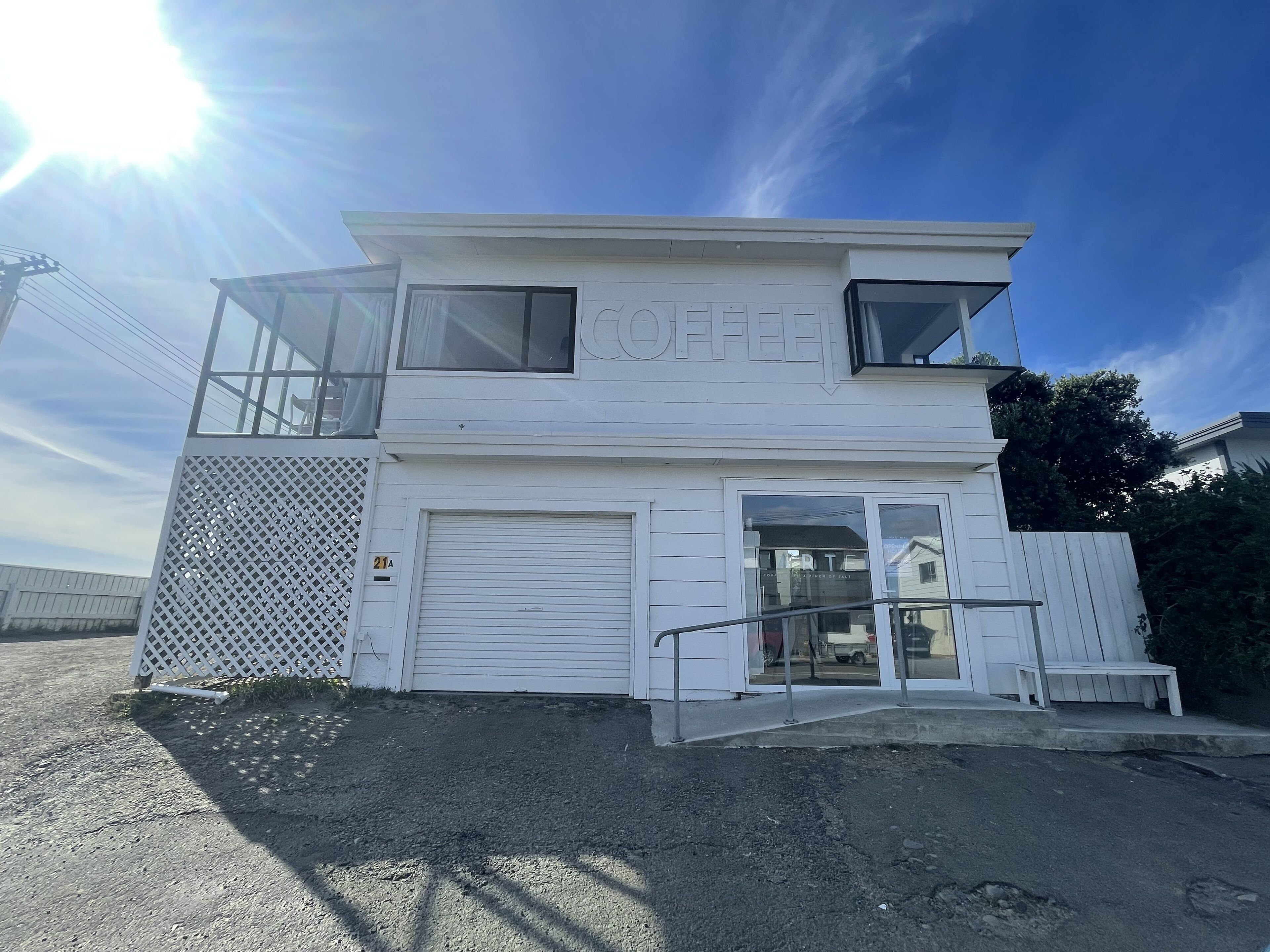 Situated above L'arte (the towns popular takeaway coffee shop & gallery - open 7:30 am till 12 noon Wednesday to Sunday), with the beach access literally straight across the road, the popular OBE restaurant just 3 minutes walk away & two local fish and chip shops only 2 minutes drive away.