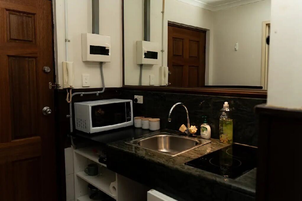 The well-appointed Studio provides a New York styled, open-plan space to unwind and relax. Offering a comfortable king or queen bed, apartment-controlled heating/air conditioning, kitchenette with cooktop, full sized fridge, toaster, kettle and microwave, ensuite bathroom with amenities and hair dryer, desk, LCD TV and WiFi internet access. A wardrobe, ironing board and iron, and private safe add to the convenience. Guests can access the in-house gym and alfresco BBQ area. Housekeeping service is included upon request (excluding weekends and public holidays). . Breakfast and restaurant options are available, contact us for details. Typical apartment size: 38m²