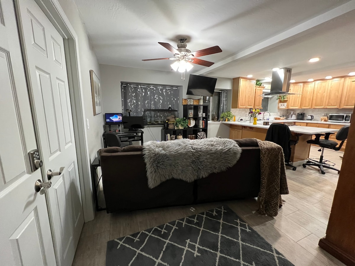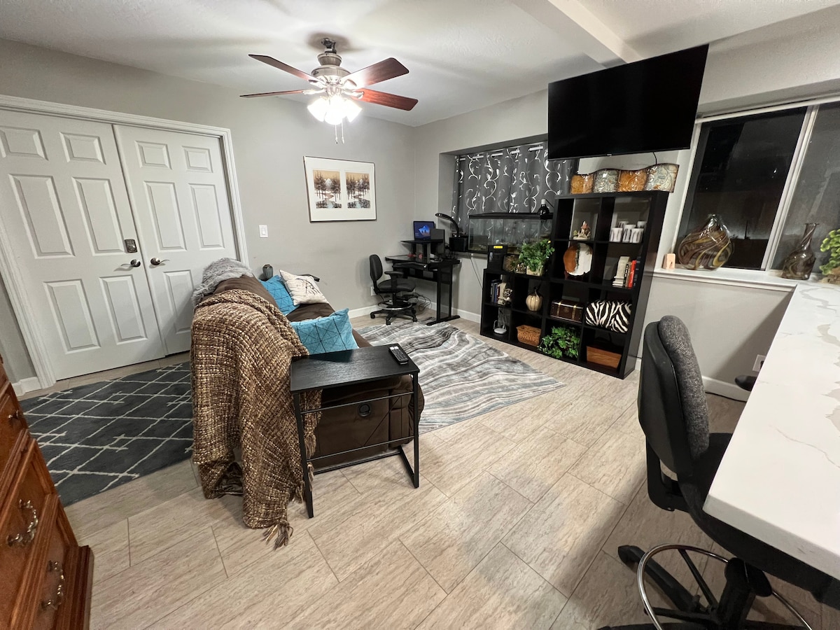The studio has newer laminate flooring, marble countertops, butcher block island, custom Shaker style cabinets with soft close and glass subway tile backsplash. The unit has a full stove top and oven with microwave and fridge. There is a living room area with a large flat screen TV as well as newly installed air conditioning and heating. We offer high speed internet/WiFi, premium cable TV with hundreds of channels and free on demand movie options. The spacious backyard oasis is shared with main house guests but there is a side patio right off your front door that can serve as your private area. The Jacuzzi hot tub, a Weber propane grill and two fire pit tables are available for use to everyone at the home. The entire perimeter of the property is monitored with security cameras for additional safety.