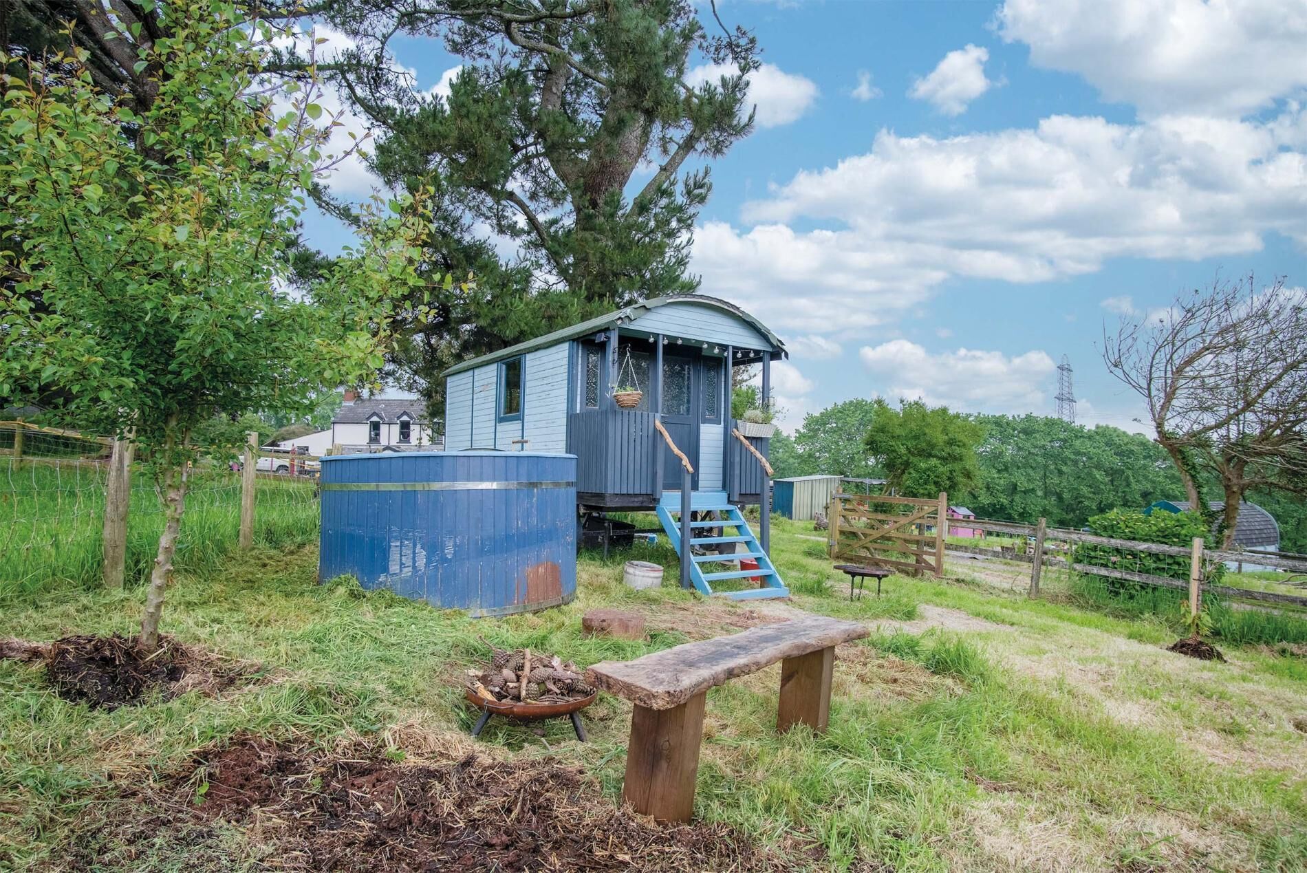 Experience a whimsical stay at Lamb, a beautifully decorated Shepherds Hut that can accommodate up to four guests, nestled in the enchanting Greenfields of Maidenwells, Pembrokeshire.