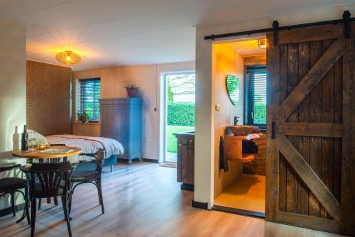 Beautiful beautiful studio (downstairs) in the heart of Aldeboarn. Located on the open boating water de Boarn. Space of 9x5 with private kitchen dining area and sitting area and screened in a double bed made of pallets. This bed can also be dismantled into 2 single beds. House has its own entrance and bathroom with toilet that you will find in the hallway. Studio has French doors to the garden with south-facing terrace (shared garden with owner). Use of outdoor kitchen in consultation.