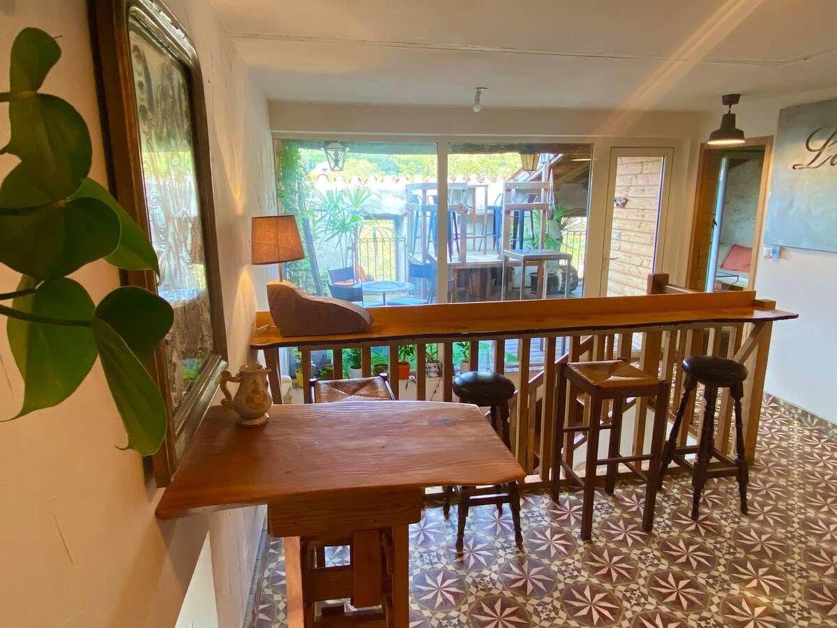 LE LOGIS DU BARON - fully equipped to accommodate up to 4 people in the Heart of GANGES , Cevennes town center, at the foot of the Cevennes in the immediate vicinity of all natural services and attractions, with in front of the LOGIS;