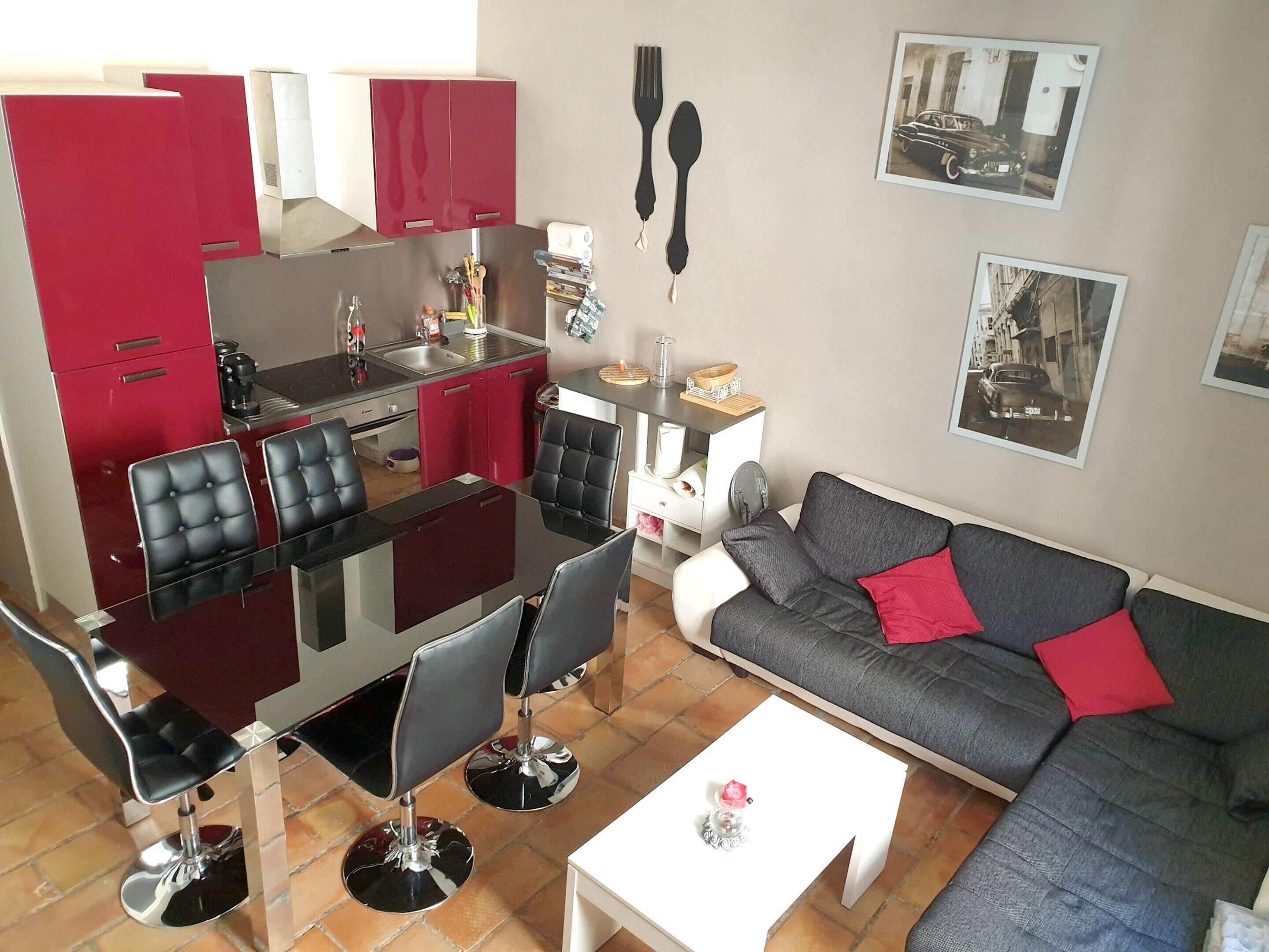 T2 dans maison de village offers accommodations in Ganges, 27 miles from Montpellier Zoo and 27 miles from Agrolpolis International. This property offers access to a terrace, free private parking, and free Wifi. Outdoor seating is also available at the apartment. The air-conditioned apartment consists of 1 bedroom, a living room, a fully equipped kitchen with an oven and a coffee machine, and 1 bathroom with a shower and a hair dryer. Towels and bed linen are provided in the apartment. For added privacy, the accommodation has a private entrance and soundproofing. For guests with children, T2 dans maison de village provides a baby safety gate. If you'd like to discover the area, hiking is possible in the surrounding area. Montpellier Cathedral of Saint Peter is 28 miles from the accommodation, while La Mosson Stadium is 28 miles away. Montpellier - Mediterranee Airport is 34 miles from the property.