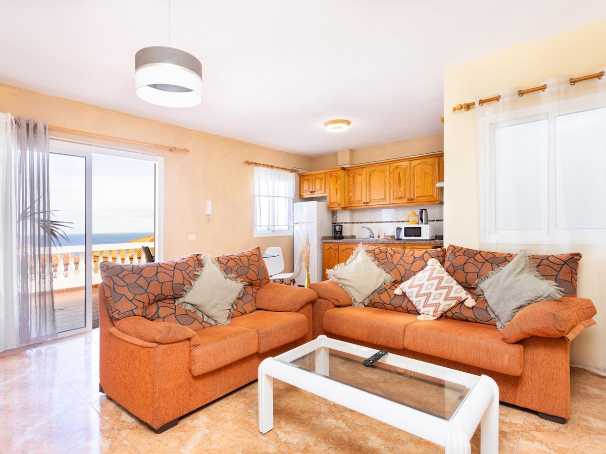 Cozy 2 bedroom apartment for 4 people with large terrace and sea view. Located in the village of La Caleta de Interian near the sea.