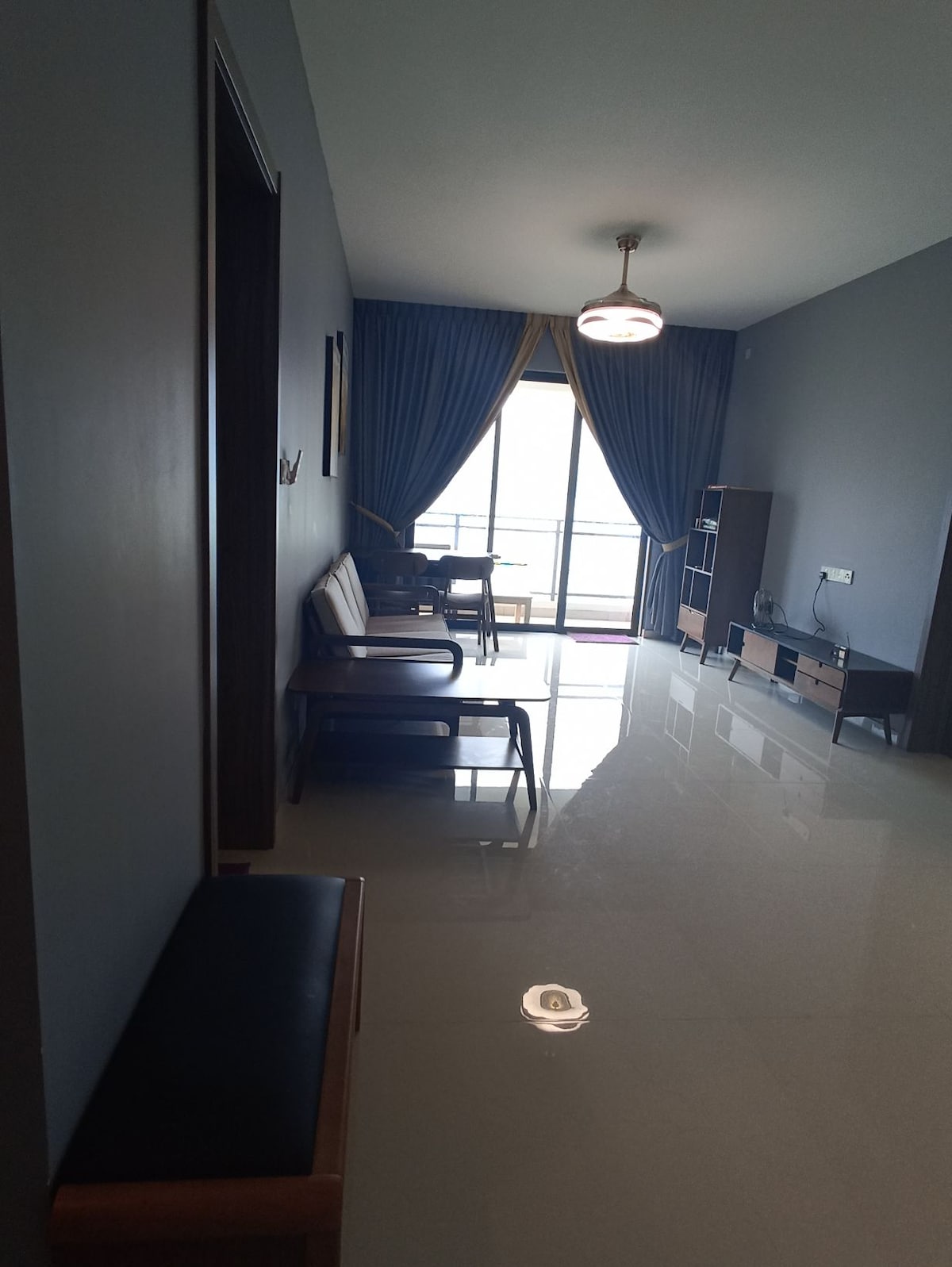 Very high floor apartment with absolute view of city line. It is just like living in the air. Relaxing and therapeutic sitting at the balcony appreciating the view especially sun set. Interior is a touch of designer and amble places for large families. Child friendly environment as well with children furnitures, toys and food wares!