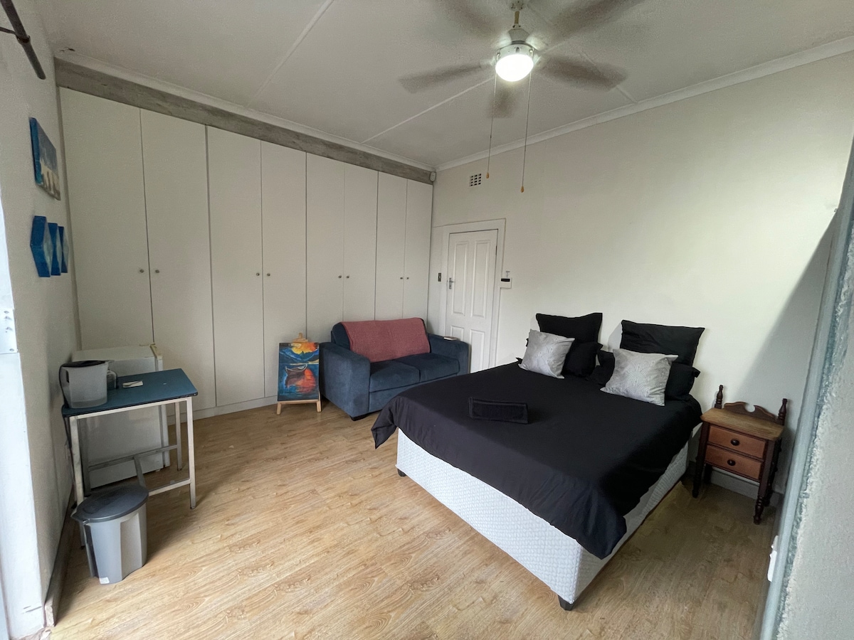 A small garden flat at the back of our property, with its own entrance from the street. Safe parking behind electric gate. Easy lock up in quiet neighbourhood, close to a Checkers.