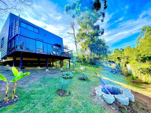 Nestled in a beautiful garden, with birds singing. Step into a creative space with original art. It is close to the Garden Route dam, with hiking and running trails. Comfortable queen-size bed, as well as a comfy double sleeper couch. Well equipped kitchenette. Outdoor deck with a built-in braai. A home away from home...