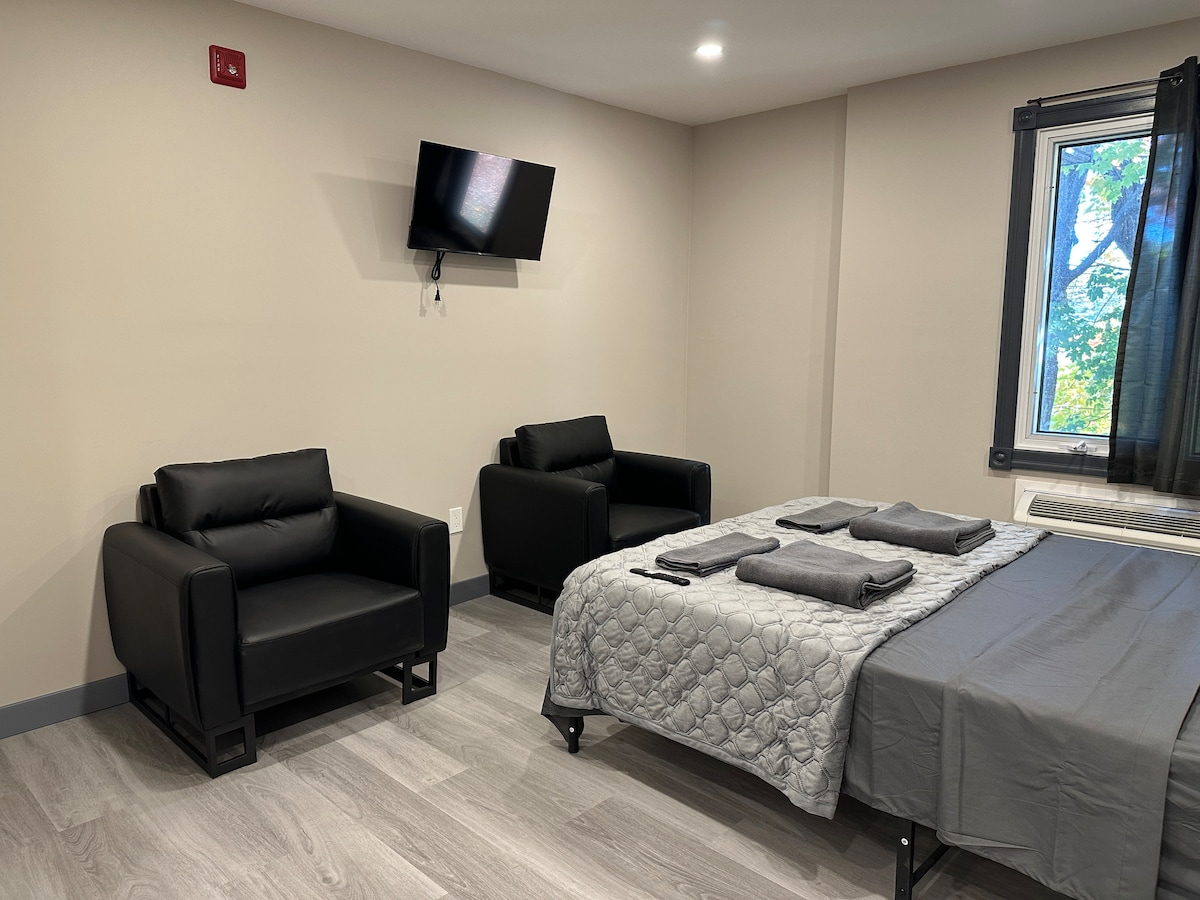 Less than an hour away from the city of Toronto. it is the perfect way to enjoy a weekend getaway on the beautiful Lake Simcoe all year long. The Lakeside guest rooms have a private entrance for each room and large windows that open onto a lake view, and a walk-out directly onto a deck and lawn. The lawn areas overlook beautiful Lake Simcoe, are sheltered by huge pines and are beautiful in all seasons. Each room has a gas fireplace and a wet bar with a refrigerator. One room has a pull-out sofa. The Lakeside Guest Rooms are located in the cottage area and are a ten-minute walk or two-minute drive from the nearby resort which you will have access to the facilities. All rooms have an ensuite Three-piece bathroom, flat-screen TV, and telephone. The room features a wet-bar and refrigerator as long as a spacious living and dining space, kitchenette and a walkout deck overlook the stunning view of Lake Simcoe.