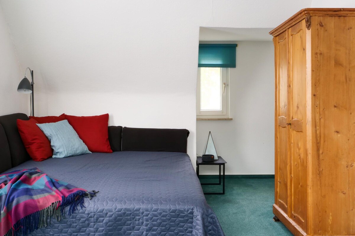 The self-contained apartment is located on the upper floor and is easily accessible. The house entrance on the first floor is shared by the guests and the hostess.