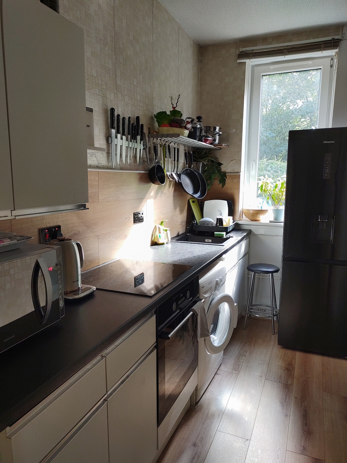 Full access to bathroom with powerful shower. Full access to very well equipped kitchen. Including fridge, microwave, kettle, toaster, washing machine, fridge freezer, table and chairs. WI-FI throughout apartment. There is free on street parking.