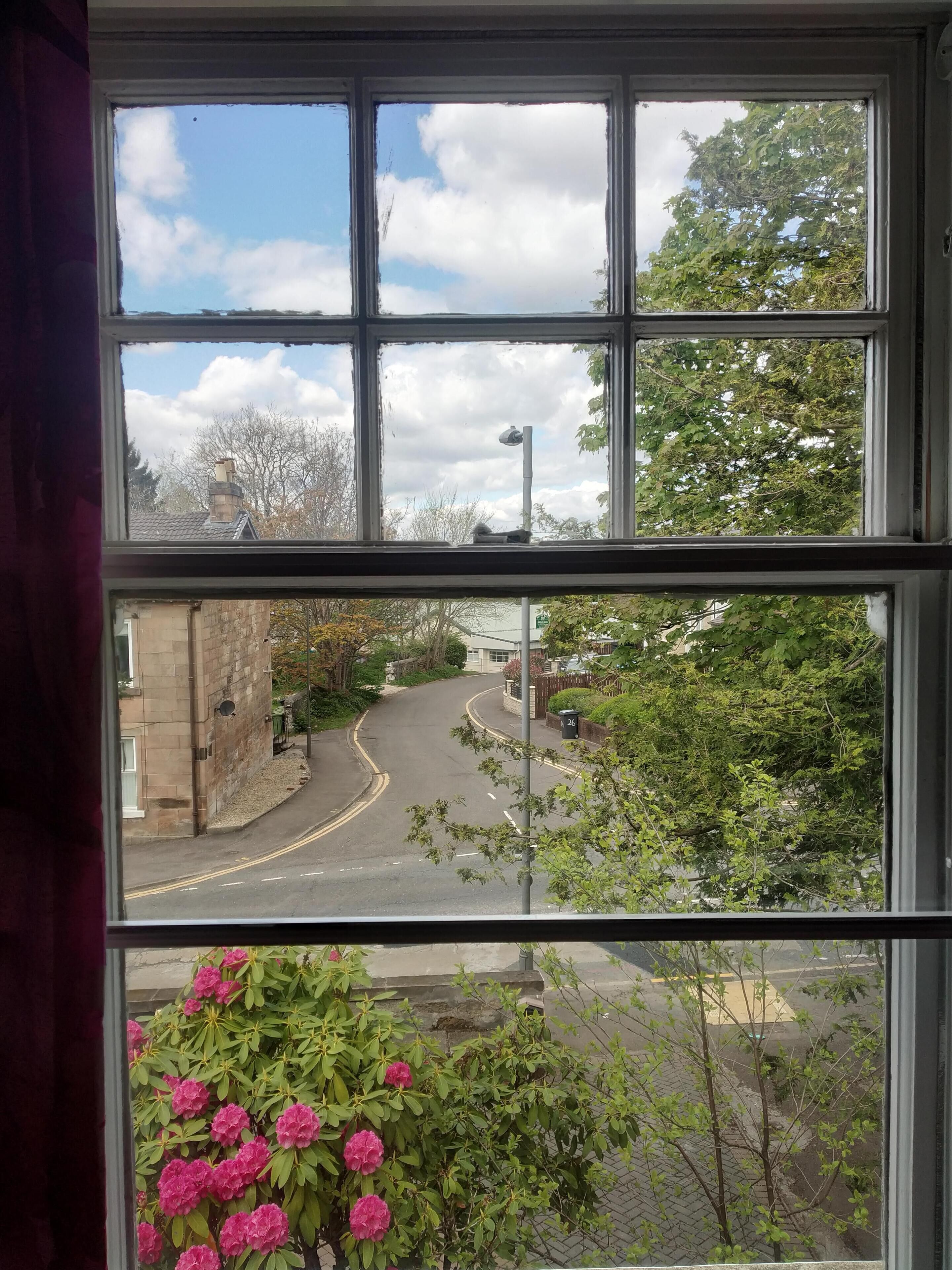 Comfortable furnished double room, with lock on door for peace of mind and extra security. The room is nice and quiet at back of the building with views over garden. Gas central heating. Desk and chair for study or work and comfortable chair for relaxing. Clothes horse for drying clothes.