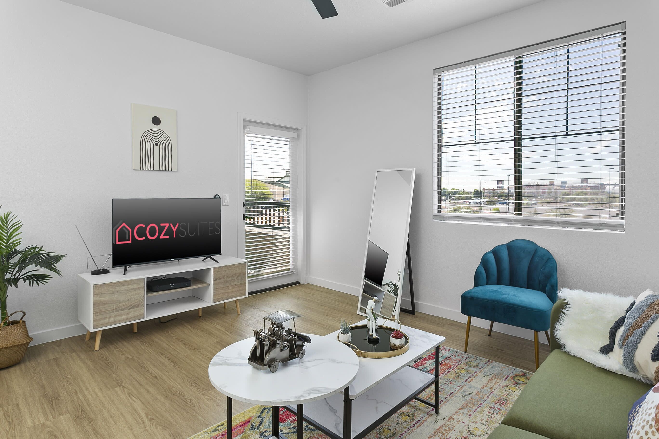 CozySuites proudly brings you the finest newly built condo in Glendale that is steps away (walkable!!) from the stadium and some of the best shopping, dining, and golf courses in greater Phoenix! This condo is perfect for football, leisure, snowbirds, spring training, and business travelers! When you are done exploring the area, come take a dip in the jacuzzi with friends and enjoy a night by the fire pit! Inside each condo you will have the comforts of home you deserve and a whole lot more!