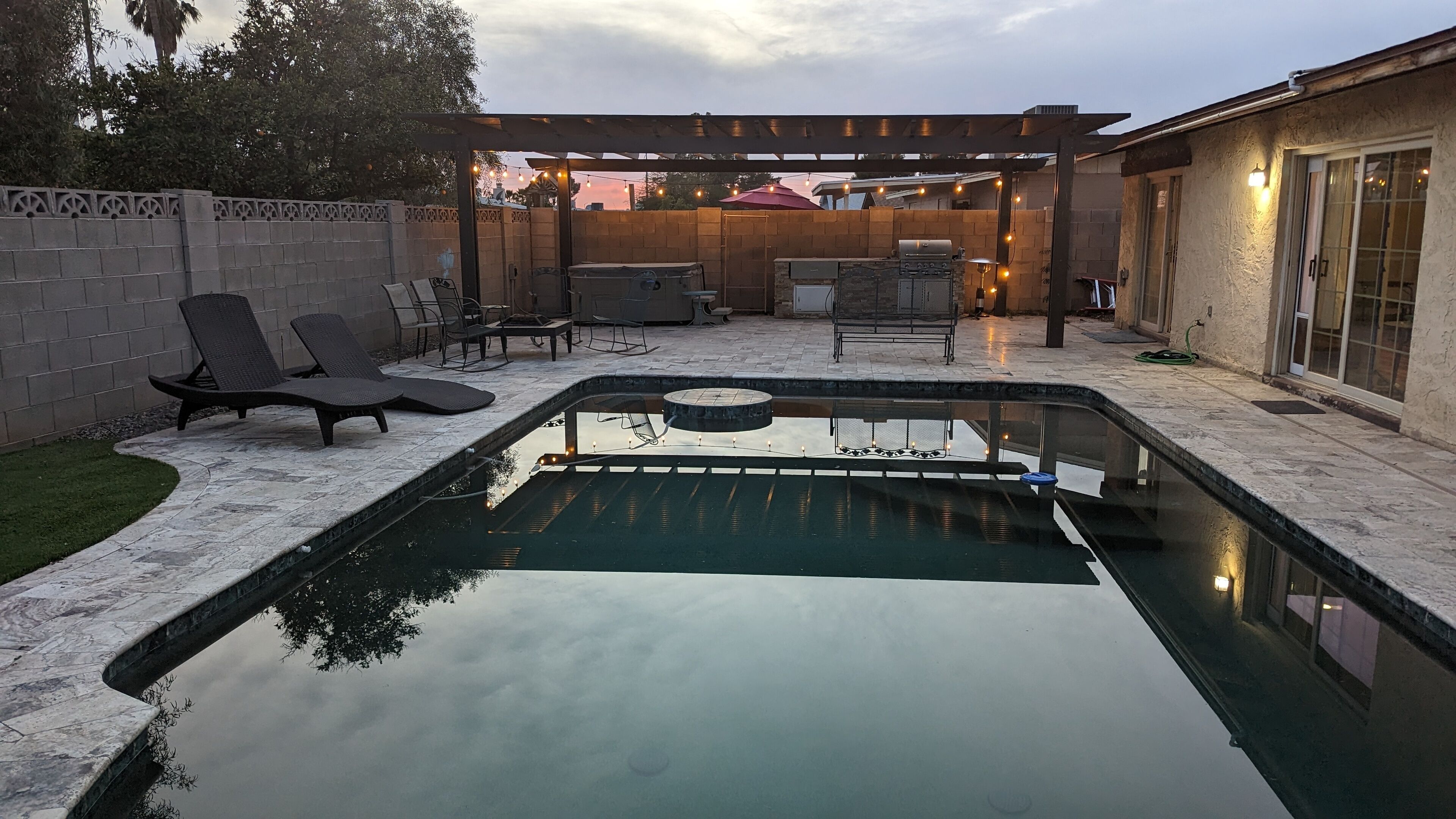 This charming place is in the beautiful community of Village Square in Glendale. Vaulted ceiling makes the space feel open and bright. The place is quite, clean and offers a large pool with great seating area. Conveniently located close to shoppings, restaurants, groceries store, GCU and amenities. It’s also just a few miles away from the StateFarm Stadium for easy access for anyone. The room offer a queen size bed, big tv. Parking on premises, high speed WiFi, and work area.