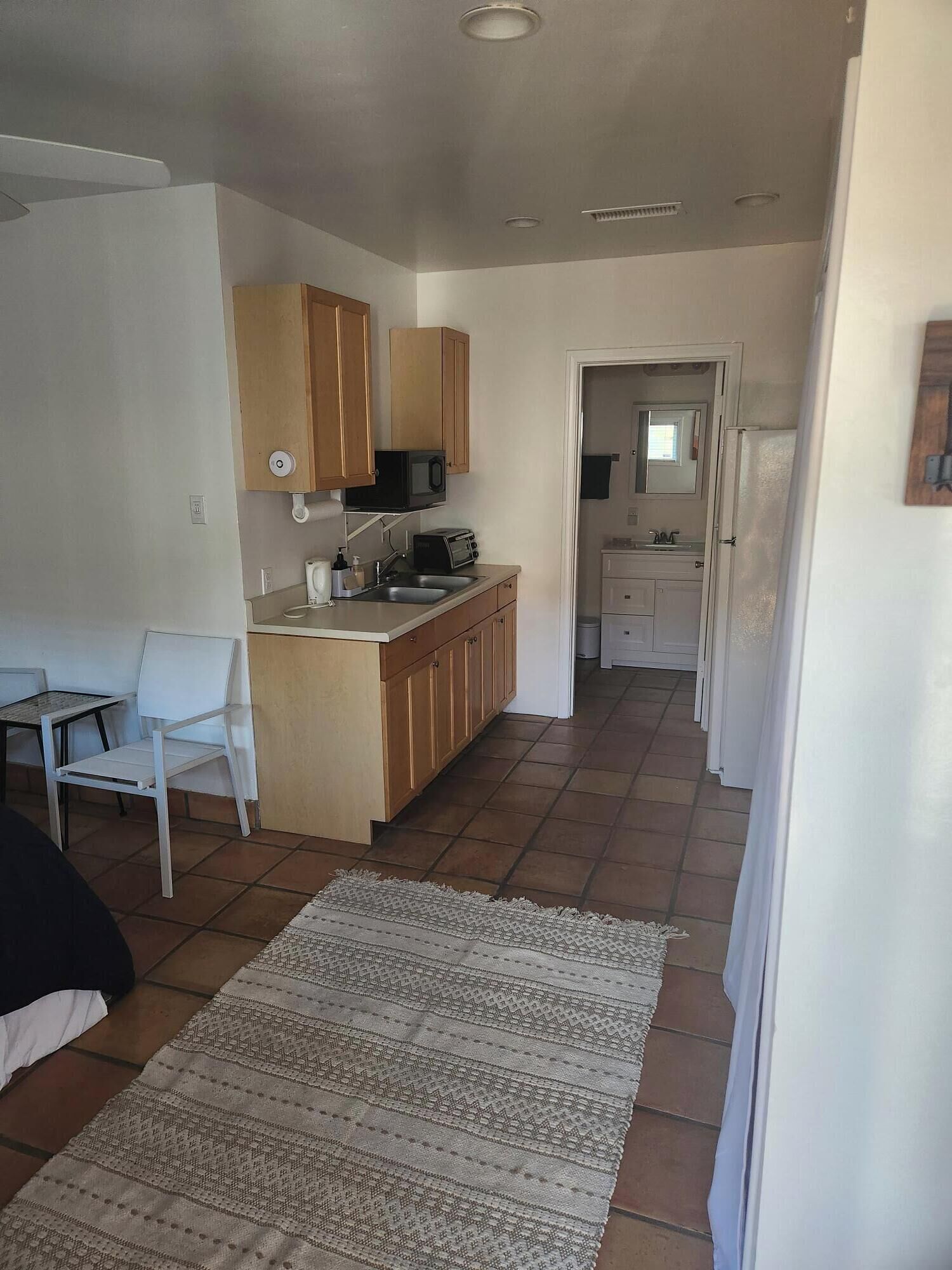 One bedroom studio, kitchenette, full bath. Queen Bed.