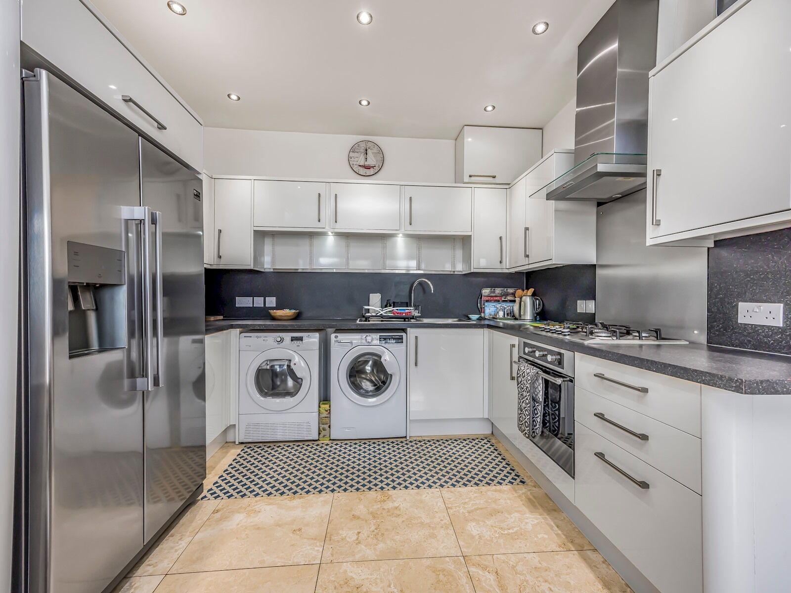 The kitchen is fitted with all essential mod cons with clean modern sleek units, a free standing fridge/freezer, dishwasher, washing machine, microwave, plus dining seating for up to 6.