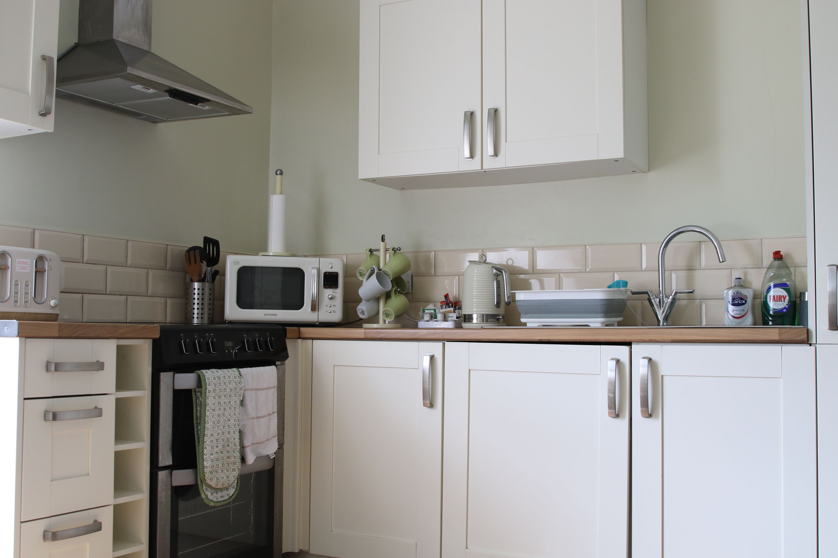 Bluebell Apartment offers a cosy double bedroom with walk-in wardrobe and comfortable double bed. The light and airy lounge has period high ceilings, large sash windows and period fireplace, as well a smart TV and two comfy sofas, one of which converts into a double bed. The kitchen is fully fitted and comes complete with fridge freezer, oven, microwave and washing machine. The bathroom has a bath and overhead shower. Fresh bedding and towels are provided.