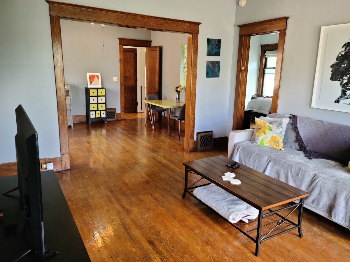 Located centrally in a vibrant, historic neighborhood Heritage Hill in downtown Grand Rapids. Our place is equipped for both long or short stays to make your holiday one to remember. Completely remodeled walking distance to several restaurants and shops, this apartment places you at the heart of it all. Surrounded by numerous restaurants, shops, and bars, your days and nights will surely be filled with exploration and enjoyment. Easy access to I-196 and I-96 ensures hassle-free commuting, while the proximity to John Ball Zoo, parks, hospitals, and the bustling downtown core guarantees that adventure and convenience are just a short drive away. Embrace the charm of downtown living with this beautiful first-floor apartment in the heart of a historic neighborhood in Grand Rapids.