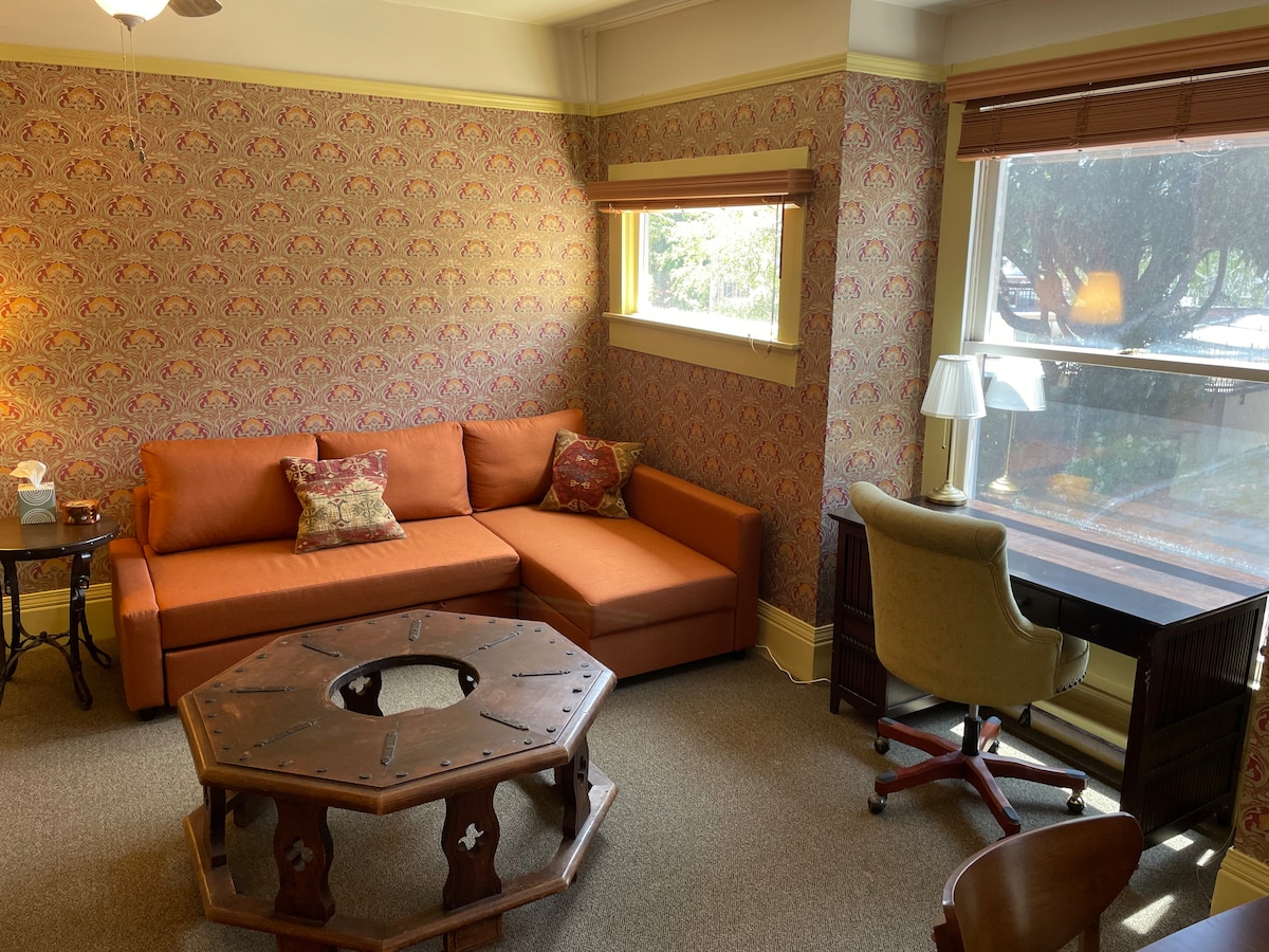 This charming, private king studio is part of The Parsonage 1865 (separate listing) located on the main thoroughfare of historic Nevada City, and is a short walk to many of the City’s best restaurants, coffee shops, bars and nightlife. This light filled guest room includes a kitchenette with a sink, fully stocked coffee/tea station, mini fridge and outdoor spaces. This room is perfect for a single traveler or a couple looking to experience Nevada City.